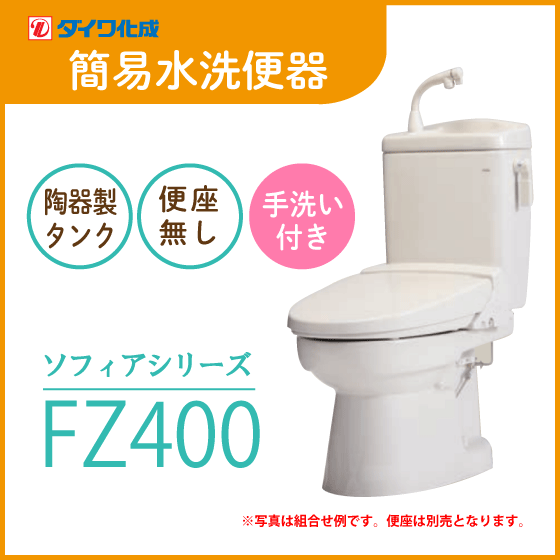 簡易水洗便器 簡易水洗トイレ クリーンフラッシュ「ソフィアシリーズ」 FZ400-H00(手洗付)・便座無し ダイワ化成