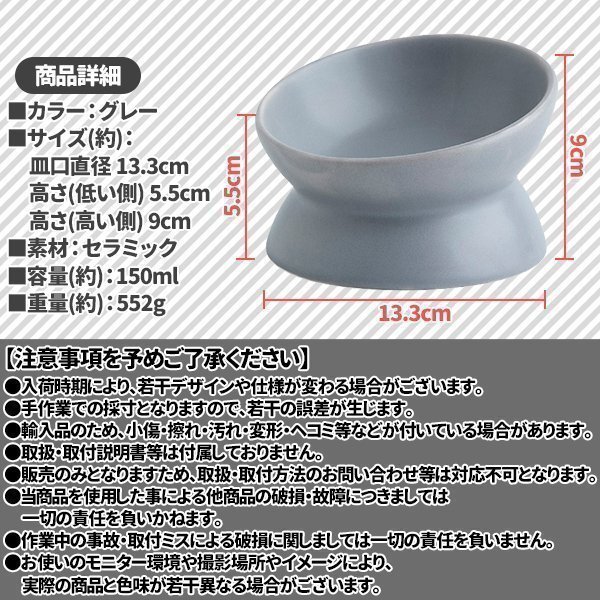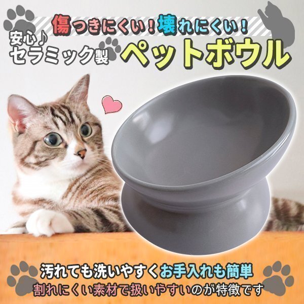 陶器 セラミック製 犬 猫 フードボウル ペット グレー 餌皿 餌入れ エサ皿 ペット用 斜め 傾斜 食器 ペットボウル かわいい おしゃれ