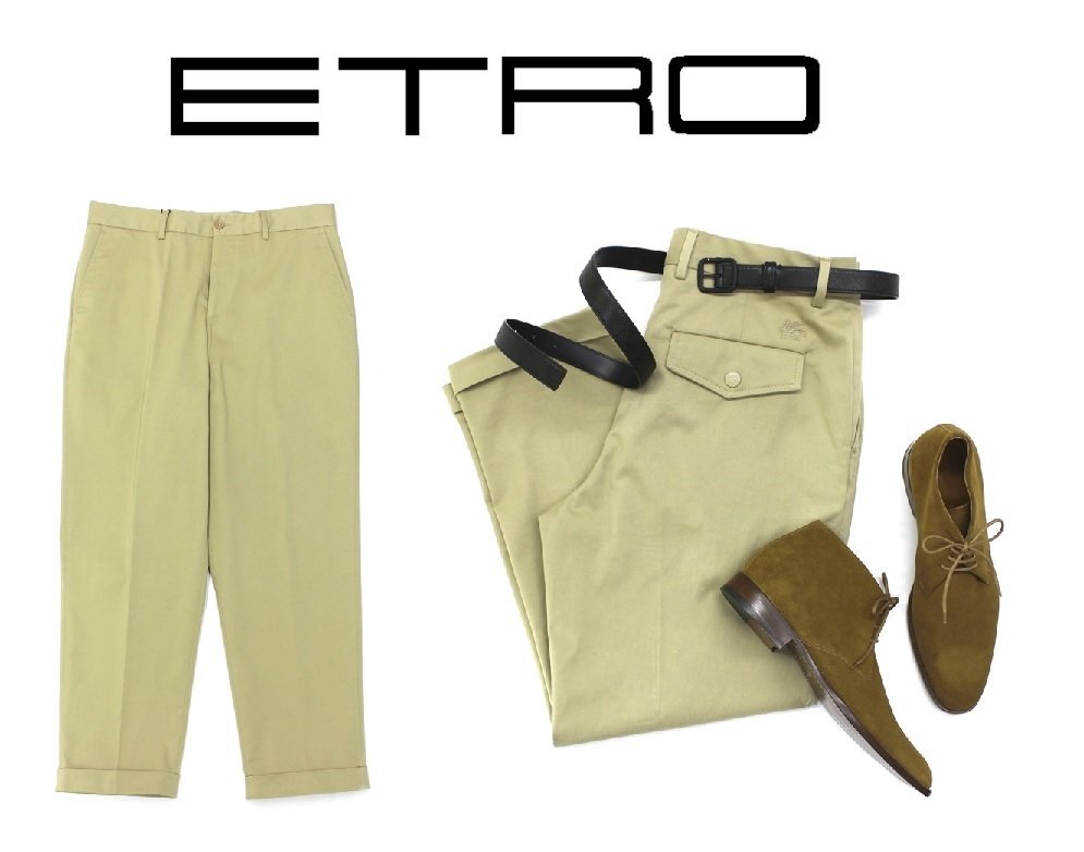 18万新品◆50=L◆エトロ◆【ETRO】PEGASO刺繍ロゴ コットンストレッチ バックスナップポケット トラウザーチノパンツ ベージュ薄茶