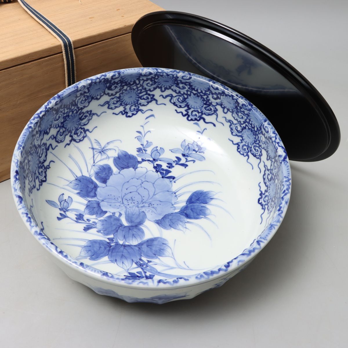 ご覧いただきありがとうございます。 古美術品 瀬戸 染付 花文 水指 鉢 合箱の出品です。