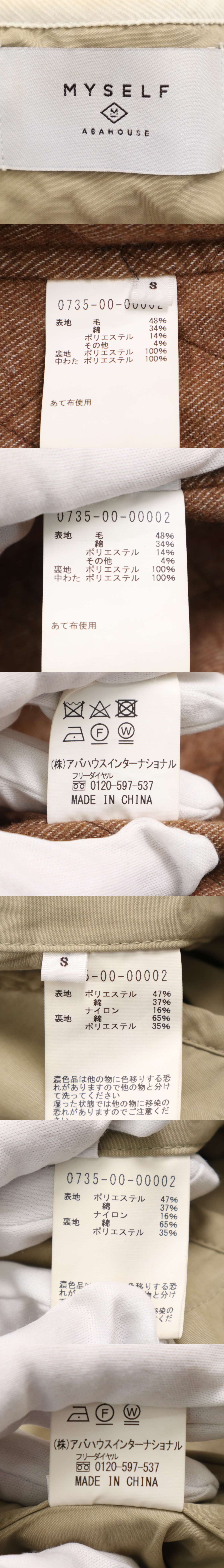 MYSELF ABAHOUSE マイセルフ アバハウス 秋冬 ウール 中綿 ライナー★ モッズ コート Sz.S メンズ