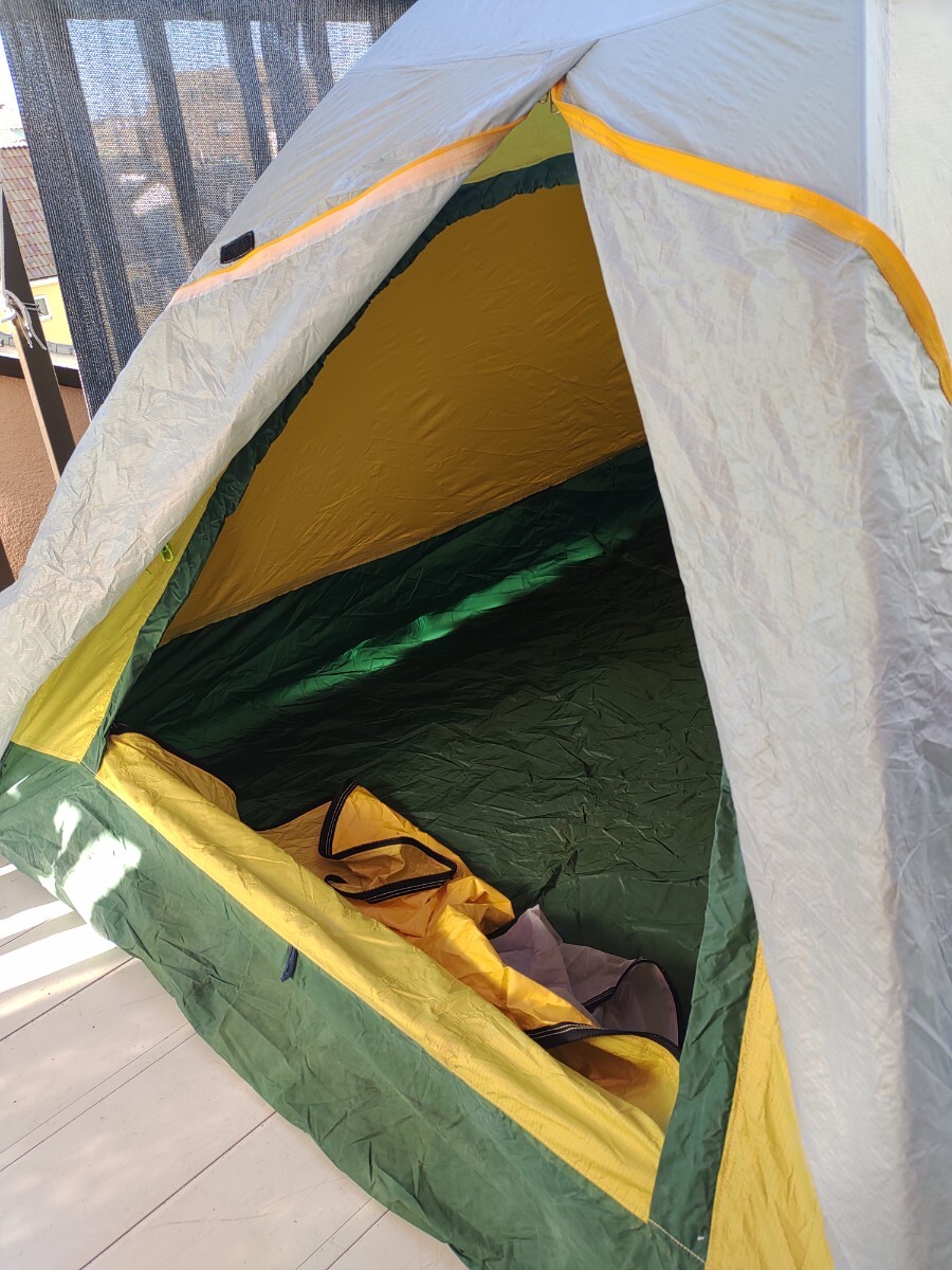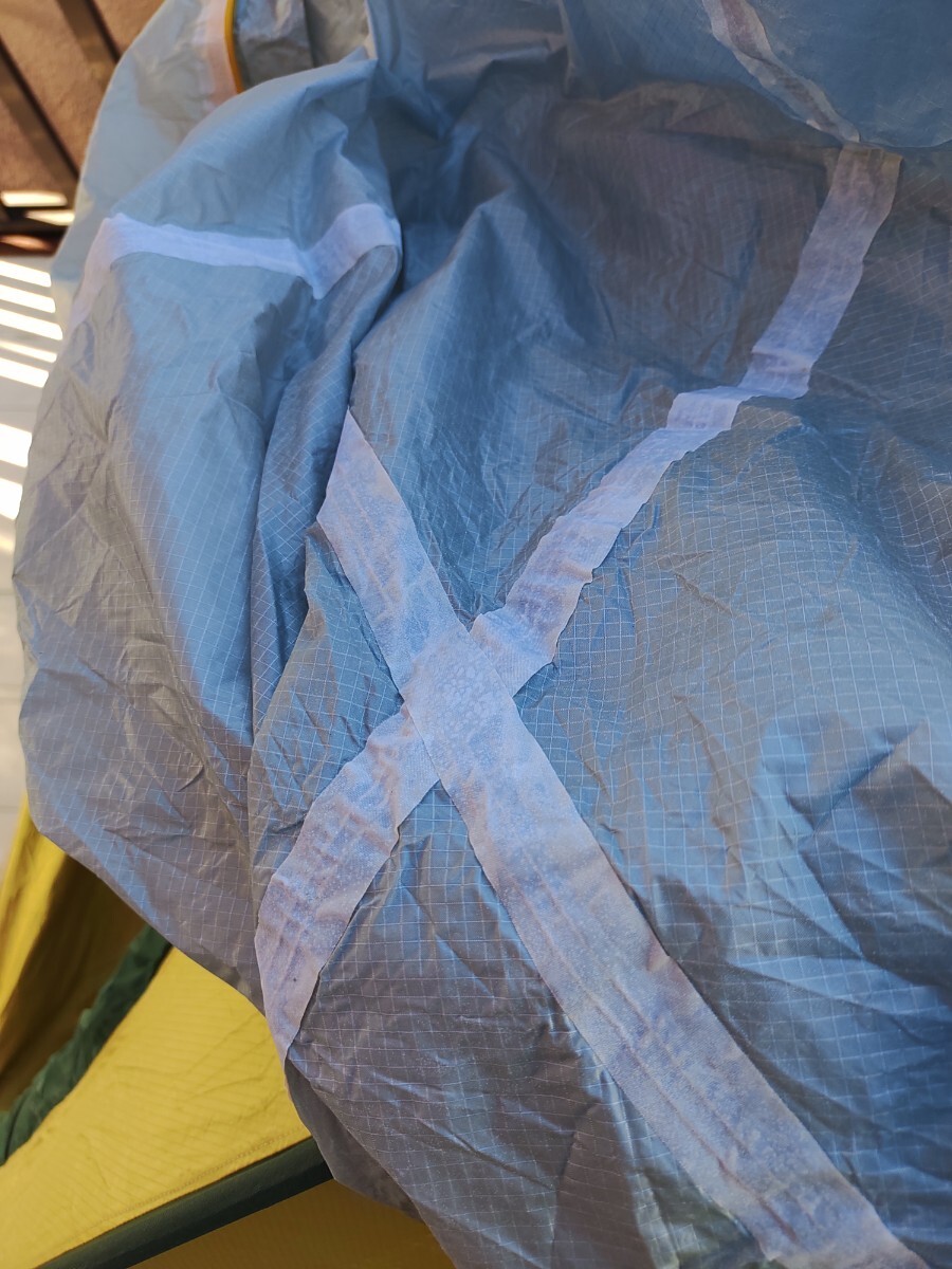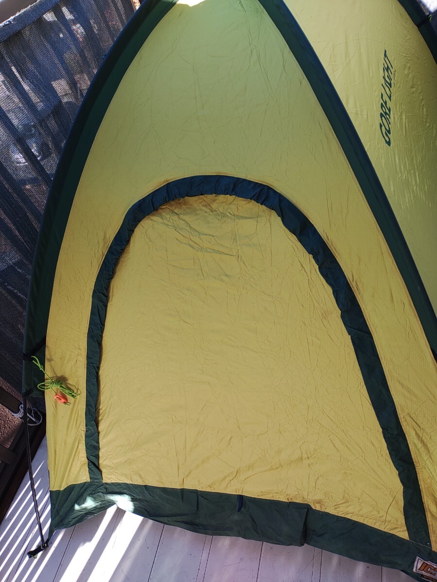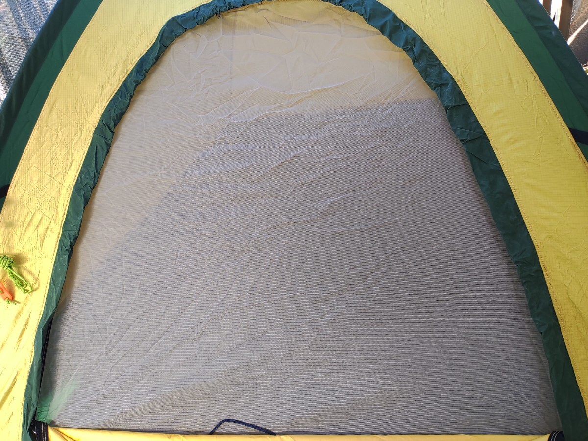 難点は、GORE生地の線状剥離(入口のある面に集中しており他の3面は目立ちません。)と、シームテープの縁の剥がれ(床中央と入口ファスナー脇とフライです。このままでも使えると思いますが、シームの損傷や硬化はないので、気になる方はアイロン掛けして下さい。)