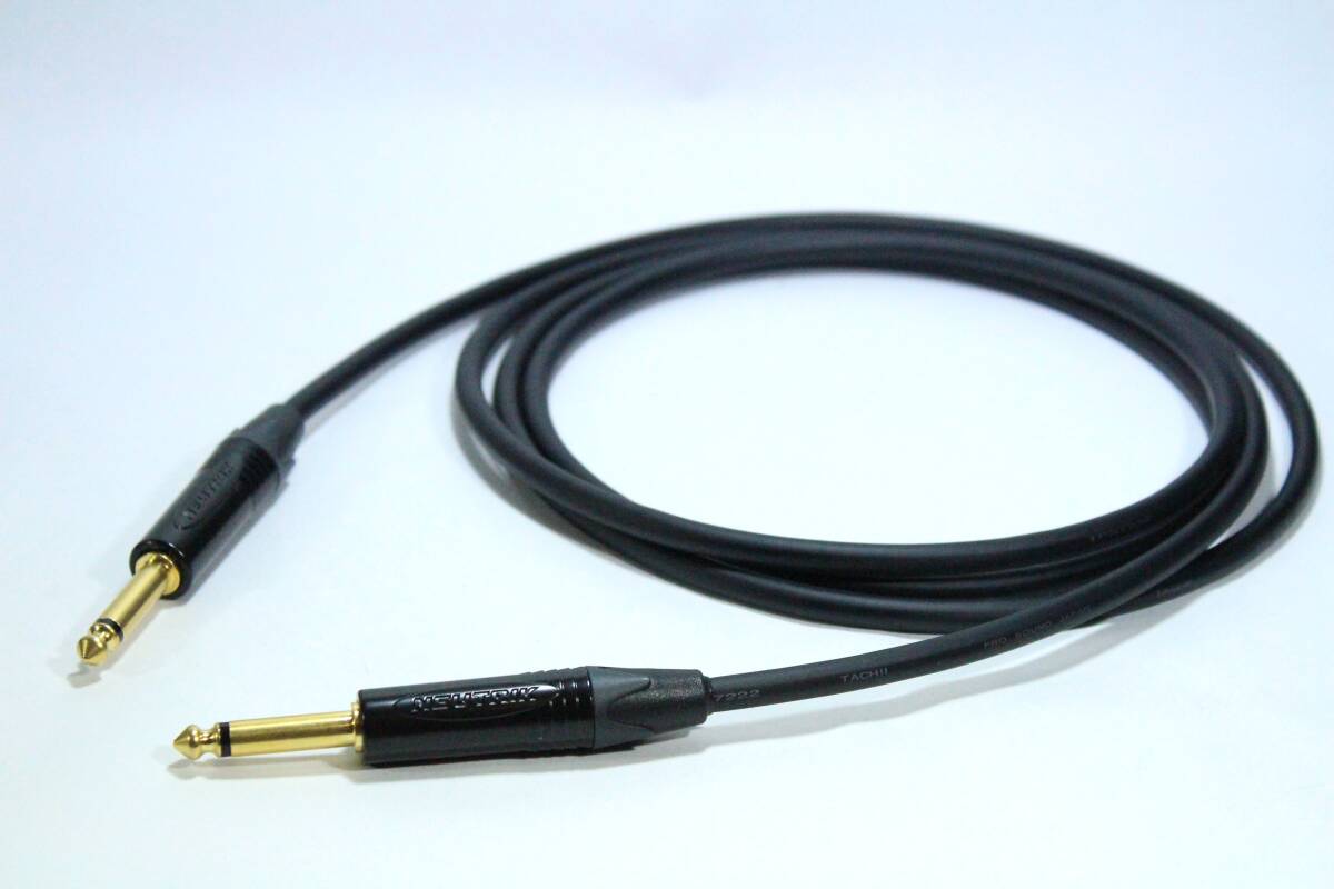 ケーブル線材にTACHII TPS7222を使用し、コネクタにはNEUTRIK製ゴールドメッキ6.3mmTSフォンプラグを組み合わせた楽器・オーディオ用シールドケーブルです。
