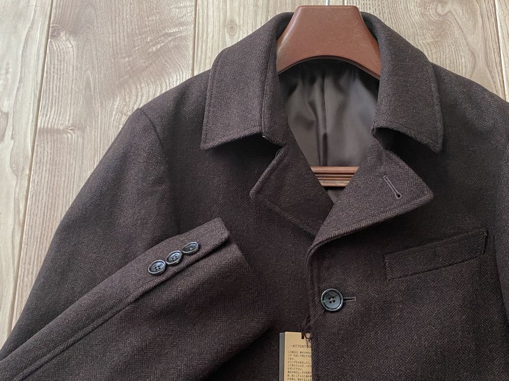 新品 COMME CA MEN コムサメン【英国産ラムウール使用】ネップツイードコート 14ブラウン Sサイズ 10WR10 定価53,900円
