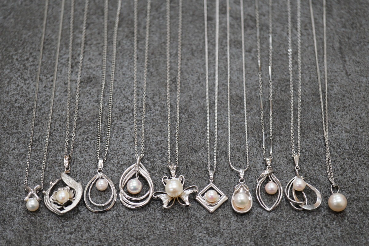 B322 全てアコヤ真珠 本真珠 パール ネックレス ペンダント 10点セット ヴィンテージ アクセサリー 大量 まとめて おまとめ SILVER含む