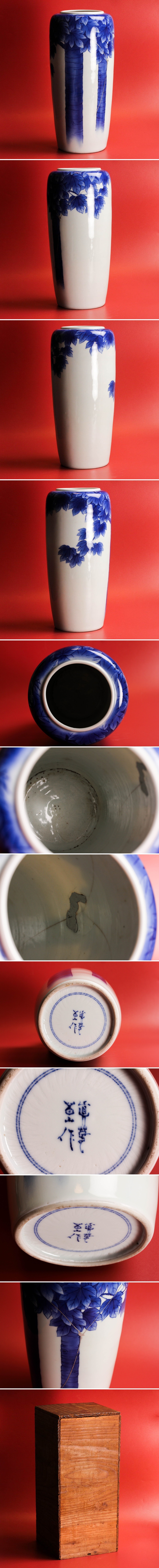 真葛香山(宮川香山) 高さ30cm 染付花瓶 木箱 本物保証