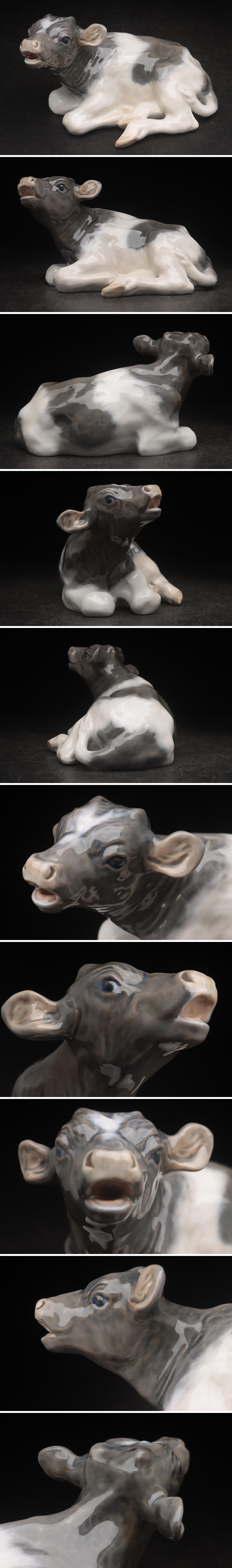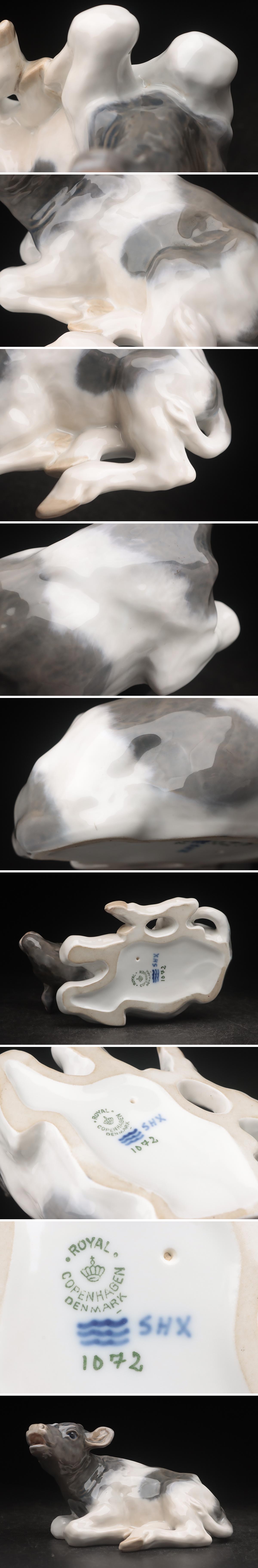 | ◆ ロイヤルコペンハーゲン フィギュリン「横たわる子牛」置物 幅16.8cm Royal Copenhagen No 1072 オブジェ 陶器人形 ◆