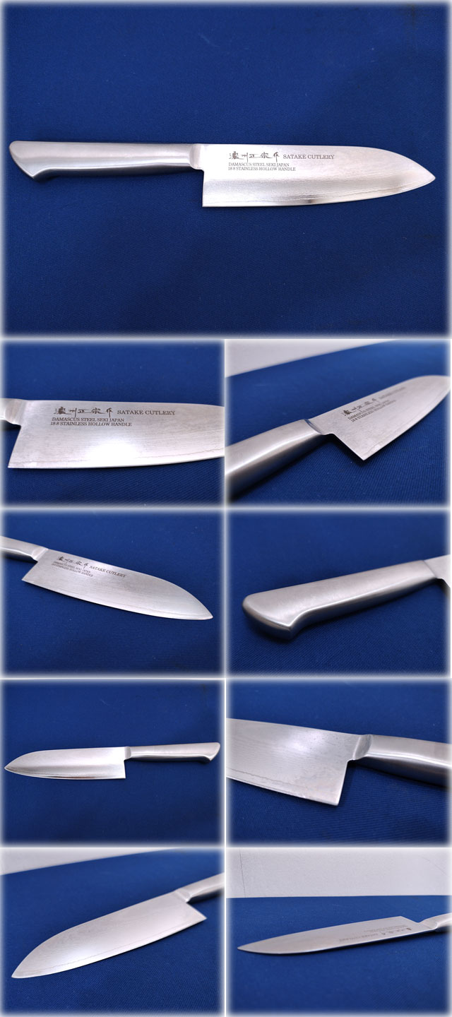 濃州正宗作(関の佐竹産業) ダマスカス鋼三徳包丁 を出品いたします。 ■特徴■ 継ぎ目のないハンドル一体型包丁 見た目にも美しい波紋模様のダマスカス包丁。 幾層の鋼材を叩き込んだ刃身は、 強靱、かつ切れ味の良さが非常に優れています。 刃物のまち岐阜県関市の 職人によって丁寧に生み出された、 どんな食材にも使える三徳包丁です。 腐食が起こりにくく衛生的な一体構造 水が入らないので腐食が起こりにくく、衛生的。 柄が抜けたり、ガタツキが起こりません。 刃先を当てるだけで、スッと刃が通る 切れ味の良い刃で、 柔らかくて切りにくいトマトや鶏肉の皮も、 気持ちいいぐらいにスッと切れます。 調理を素早くスムーズに進めることができ、 食材のおいしさも損ないません。 刃渡り16.5cm(柄の付け根までは17cm) メーカーHPもご覧ください 柄に細かなキズはありますが、 目に見えるような刃こぼれもなく 状態は良好です。 写真に写っているものが全てのセット品です 発送は格安なゆうパックでお送りします。 格安出品いたしますのでこの機会をお見逃しなく! |