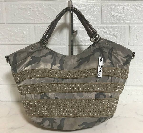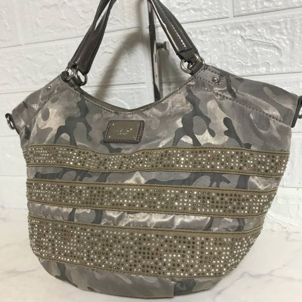 no26853 EVEX by KRIZIA エヴェックス バイ クリツィア 三陽商会 ナイロン ラインストーン 迷彩 カモフラ ハンド トート バッグ ☆