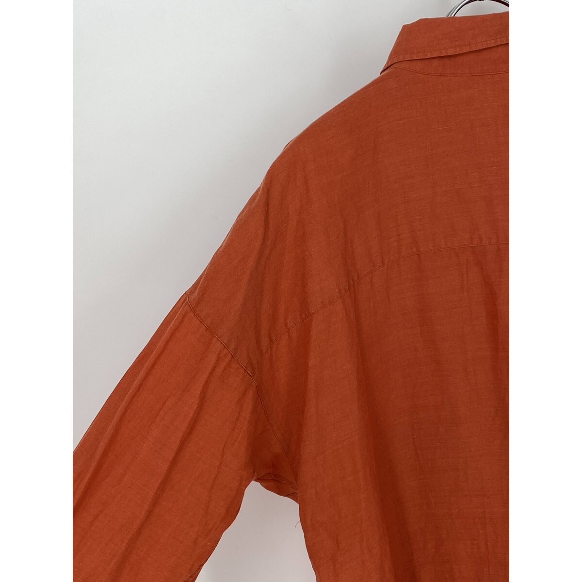 B0381/極美品 ANAYI アナイ リネン 長袖 オーバーサイズ ロング ドレス カッター Yシャツ ブラウス FREE オレンジ レディース チュニック