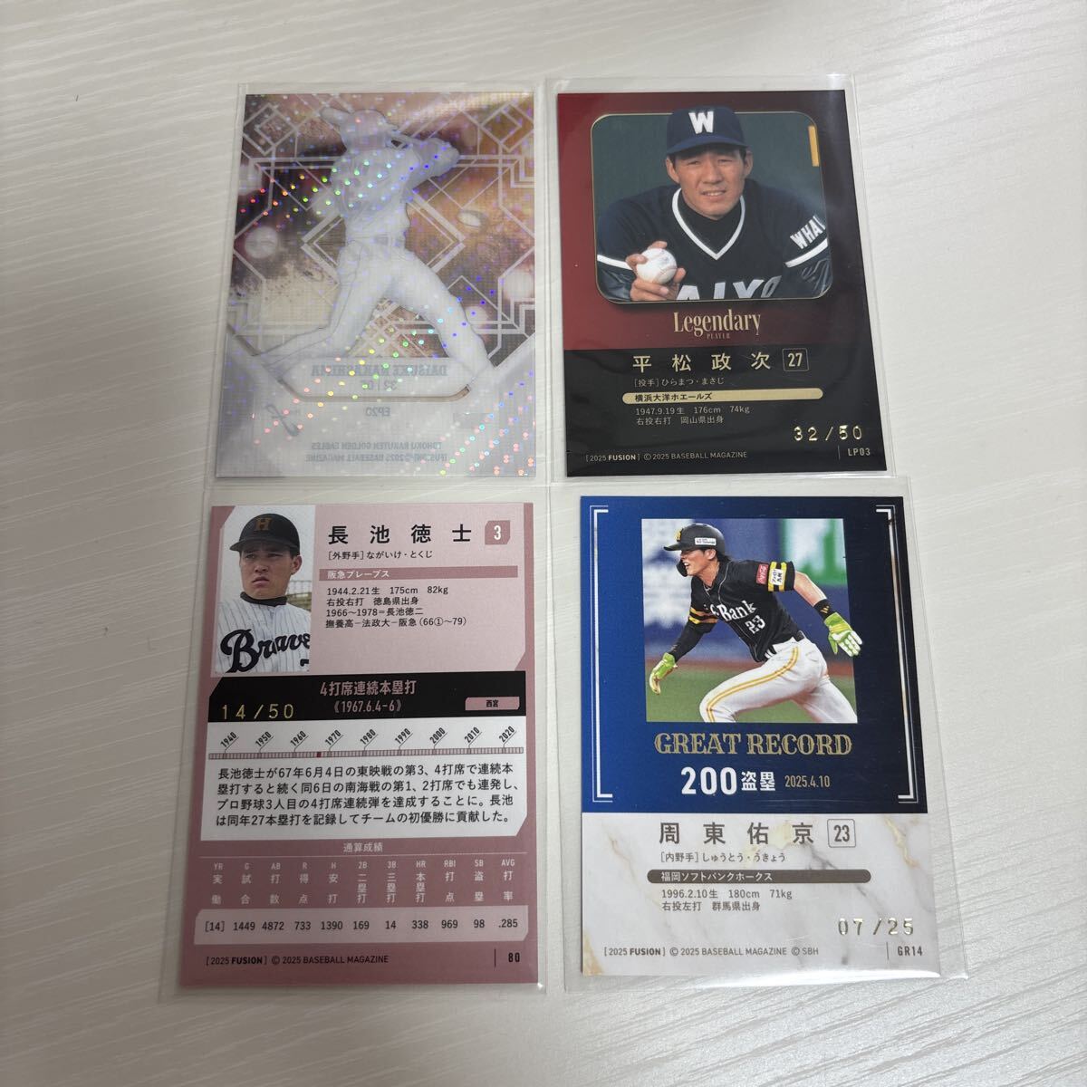 A19 周東右京 平松政次 長池徳士 中島大輔 2025 BBM フュージョン FUSION インサート 箔サイン