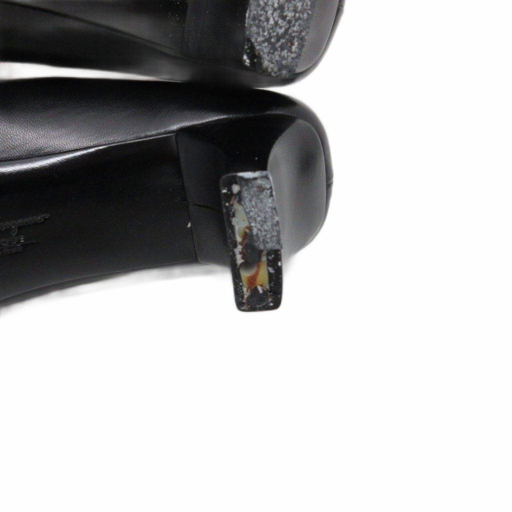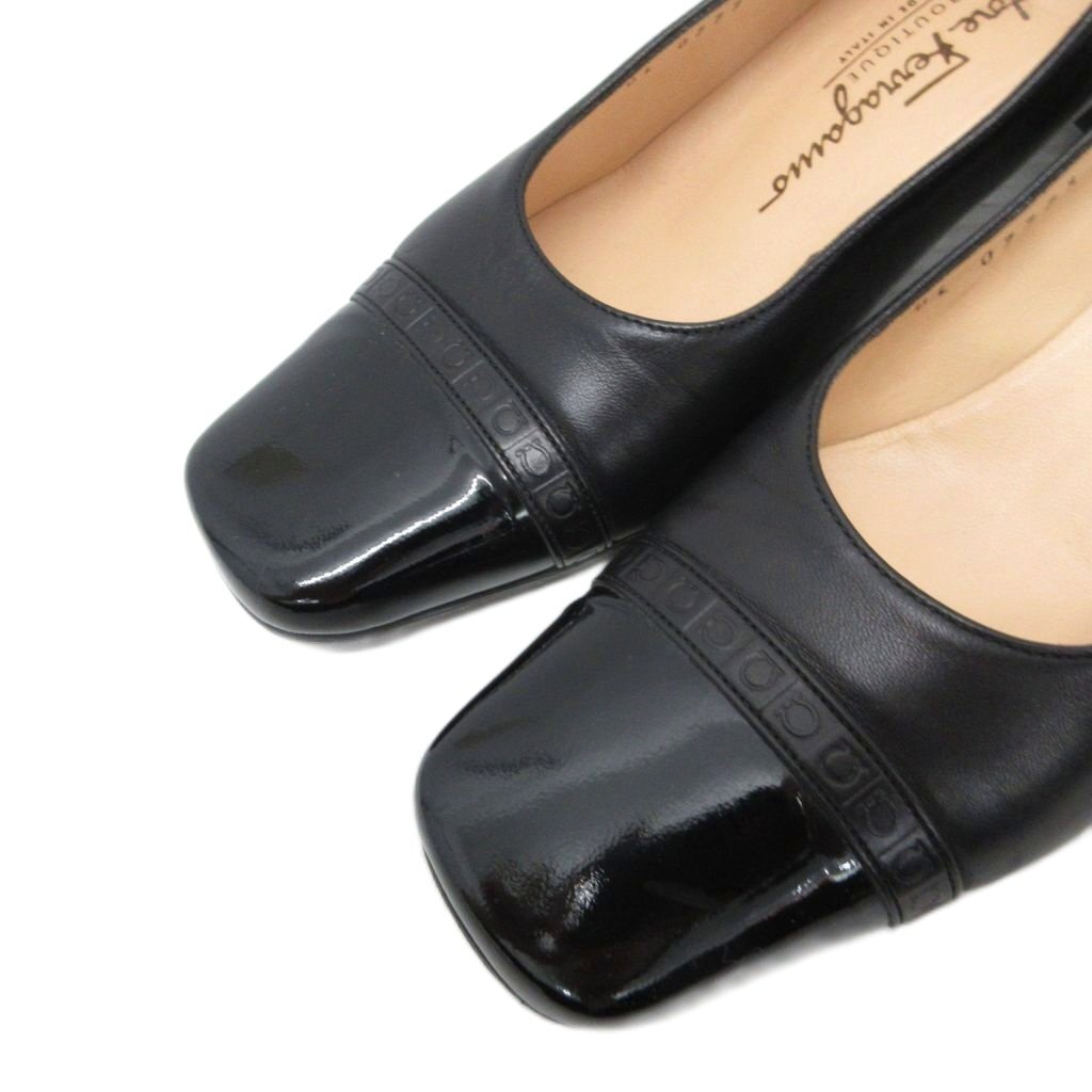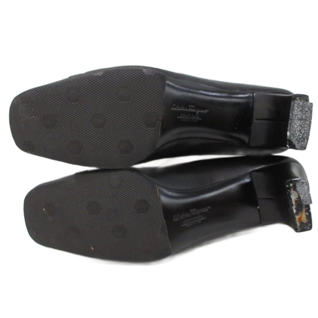 サルヴァトーレフェラガモ Salvatore Ferragamo パンプス スクエアトゥ チャンキーヒール ハイヒール 7 24.5cm 黒 ブラック レディース