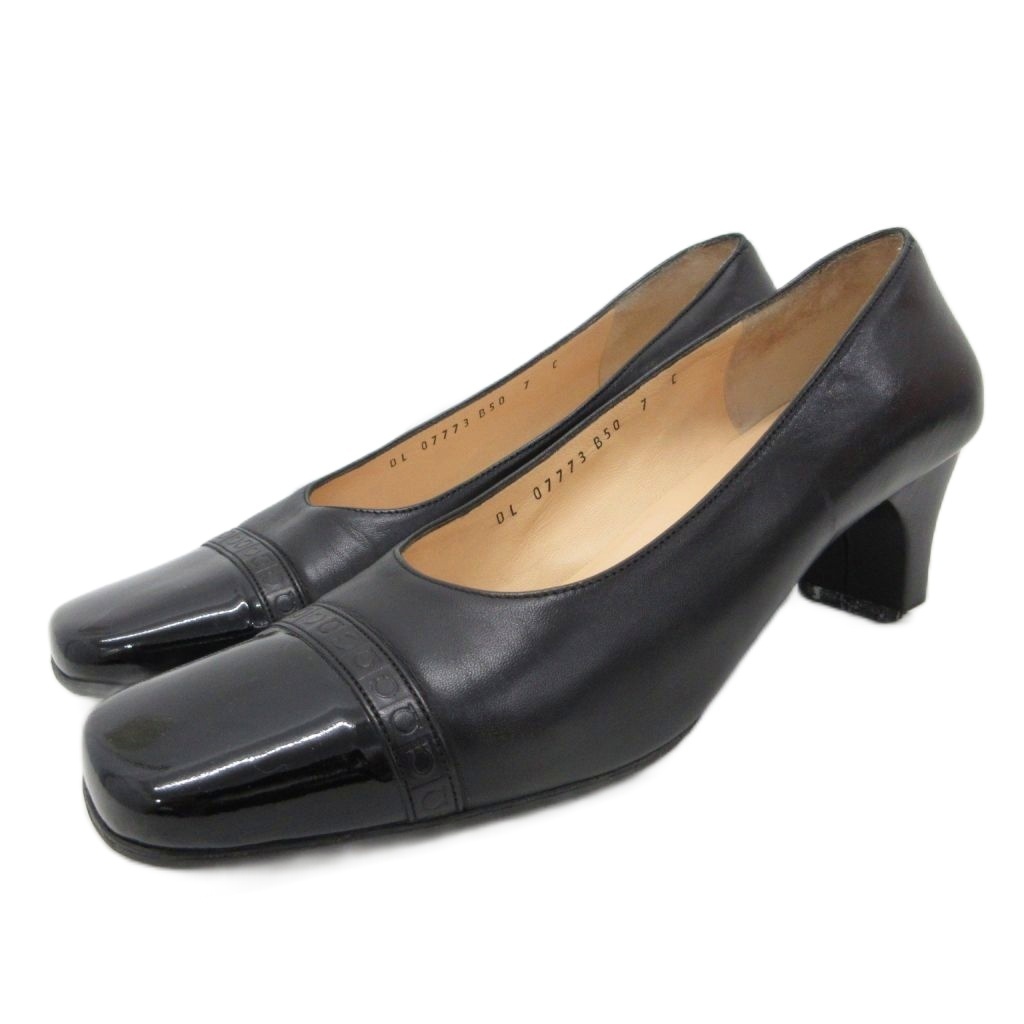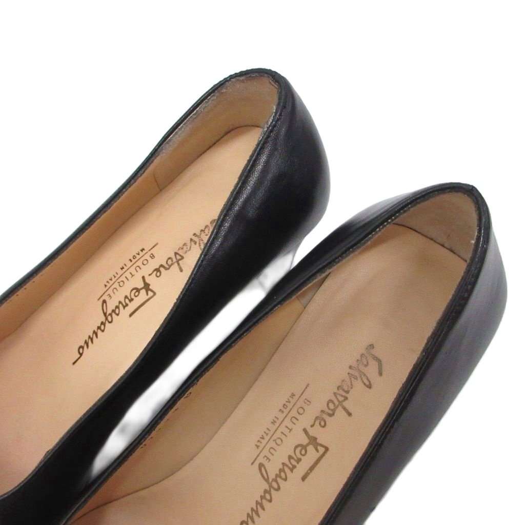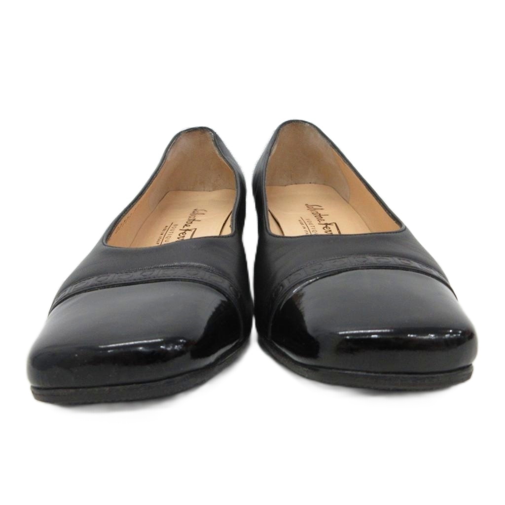 サルヴァトーレフェラガモ Salvatore Ferragamo パンプス スクエアトゥ チャンキーヒール ハイヒール 7 24.5cm 黒 ブラック レディース