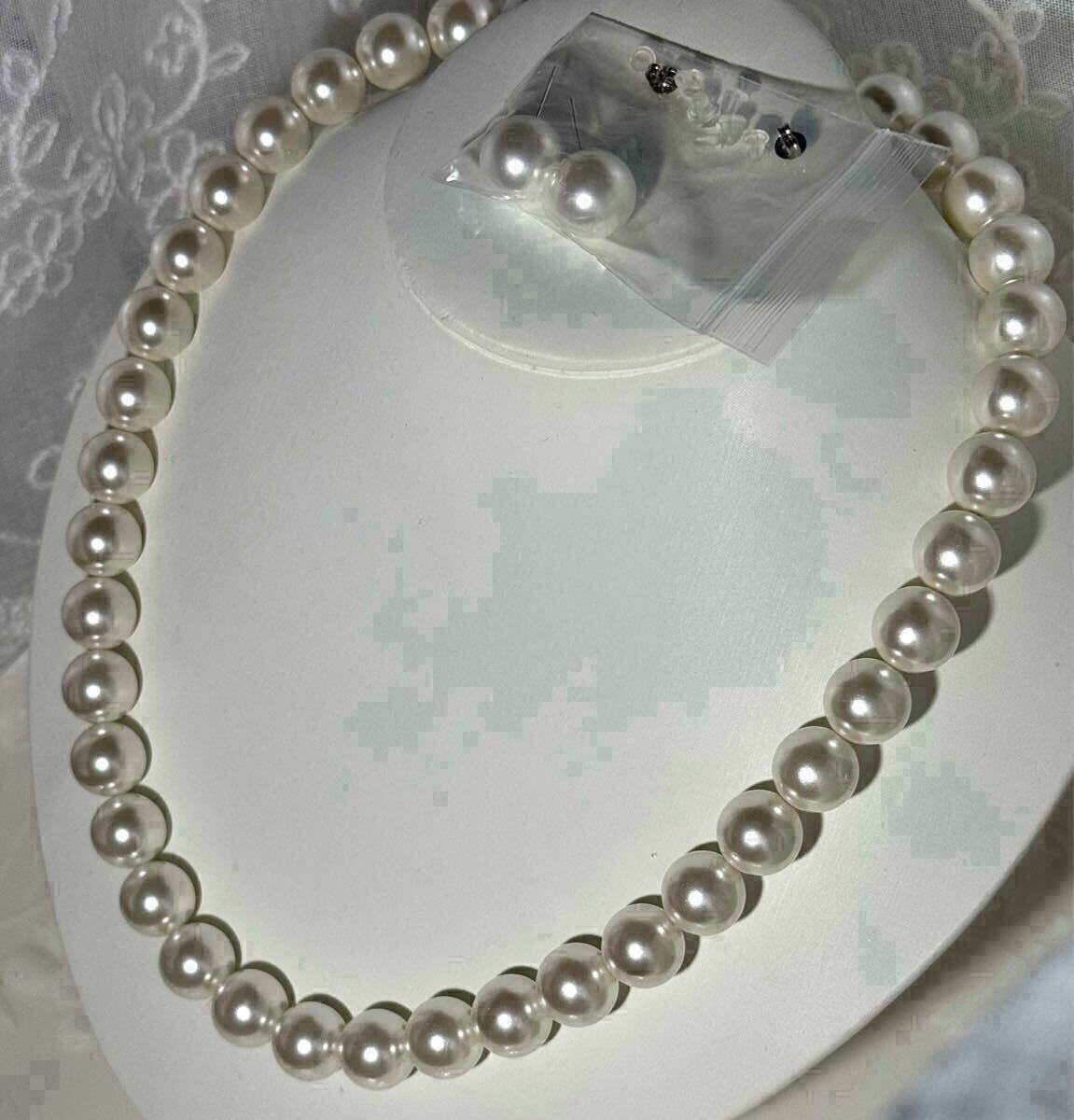 綺麗に輝くホワイト系 貝パールネックレスです。