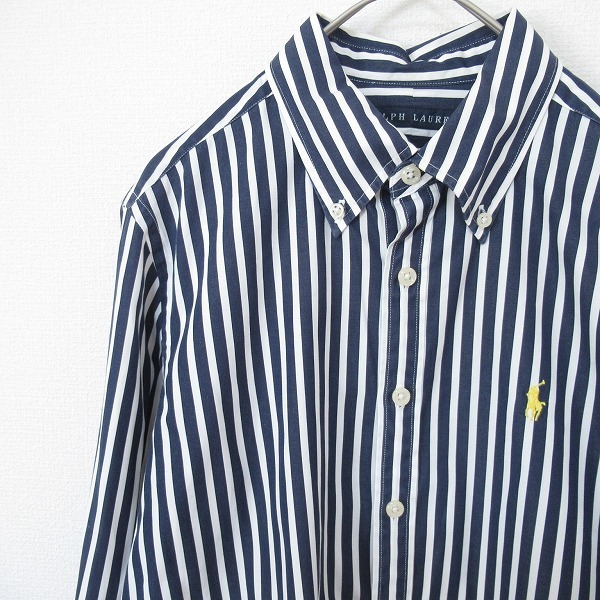 ●商品名(タイトル):ラルフローレン Ralph Lauren ヴィンテージ 長袖シャツ ブラウス ストライプ ポロ刺繍 レディース [a964988ss]