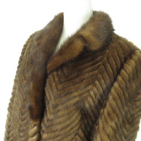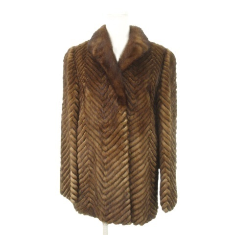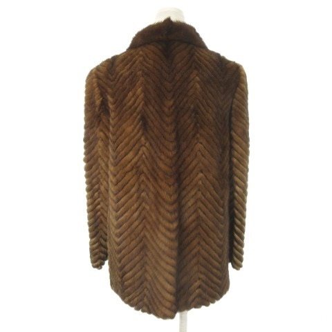 ノーブランド ファーコート ミンク 毛皮 ショート丈 11 茶 ブラウン ヘリンボーン /MN25 ■GY18 レディース