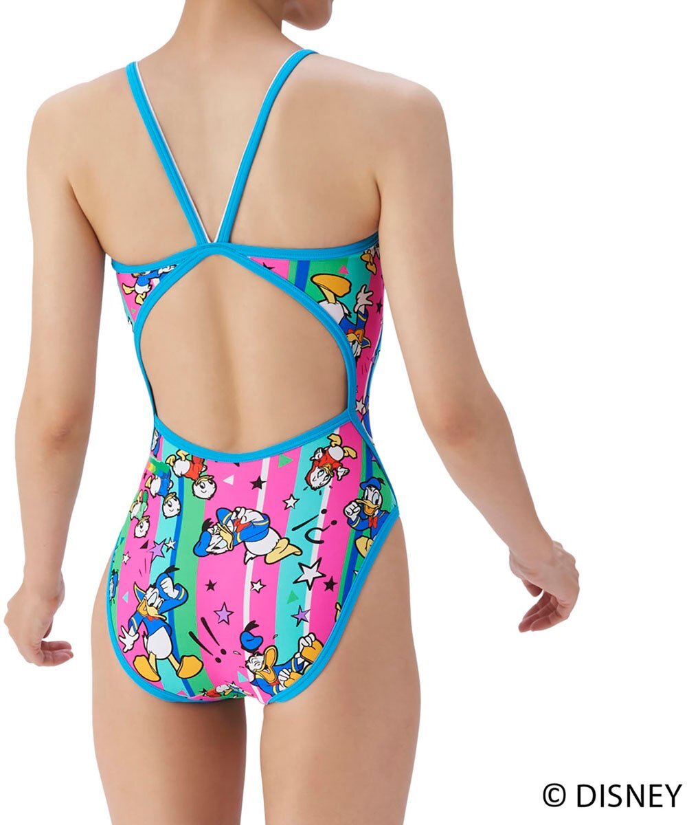 | 詳細 | 耐久性に優れたTOUGHSUIT(タフスーツ)シリーズの DisneY(ディズニー)デザインモデル。環境に配慮したリサイクルポリエステル素材を使用しており、塩素に強く長持ちするため、大会に向けて練習を重ねる頻度が高いスイマーにおすすめのトレーニング(練習)用水着。様々な表情やポーズをしたドナルド・ダックとその甥っ子たちヒューイ・デューイ・ルーイが描かれたプリントデザイン。カラフルなストライプ柄に星や記号が描かれたポップで可愛いデザインでトレーニング中の気分もアップ。水着とデザイン連動のメッシュキャップ(AS5FSC81U)やプルーフバッグ(AS5FBZ84U)とのコーディネートもおすすめ。※こちらの水着は、パッドが取り付けられる仕様となっておりますので、別売りひっかけパッドをご購入いただければ、パッドあり水着としてもご着用いただけます。また、この製品は縫製上、一点一点プリント柄の見え方に違いが生じますので予めご了承ください。 PKBLピンク×ブルー SS,S,M,L,O 水着 スイムウエア オープンバック 水泳 競泳 スイミング スイム プール フィットネス トレーニング 練習 タフスキン ハードトレーニング レディース 女性 大人 |