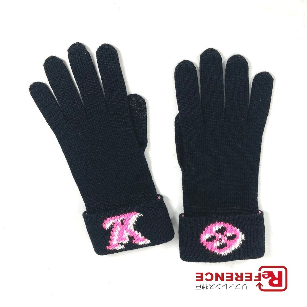 美品 LOUIS VUITTON ルイヴィトン M76451 ゴン 3D モノグラム グローブ アクセサリー ロゴ 手袋 ブラック レディース【中古】