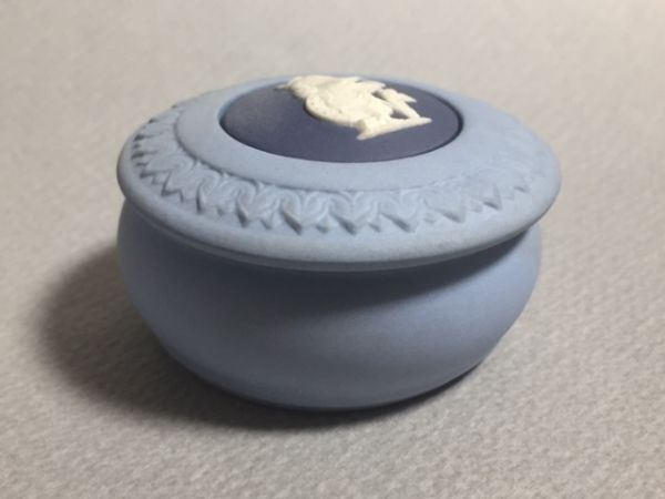 ◎ウェッジウッド 3色ジャスパー 綺麗な小型鼓形蓋物◎e35