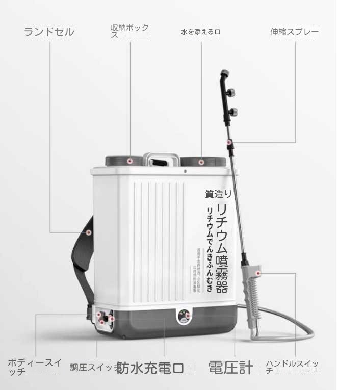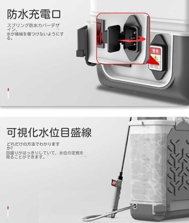 電動背負い式18L噴霧器 充電式 ノズル 農薬 除草剤 散布 液体肥料 水やりガーデニング 消毒 害虫駆除 洗車(T106)
