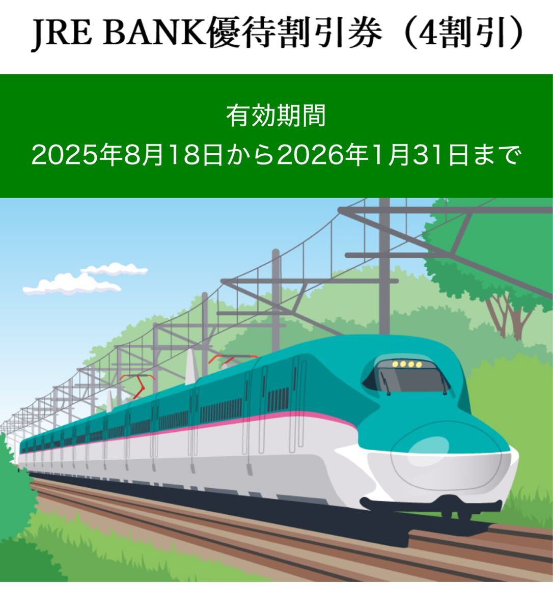 JRE BANK 優待割引券 4割引券 1枚