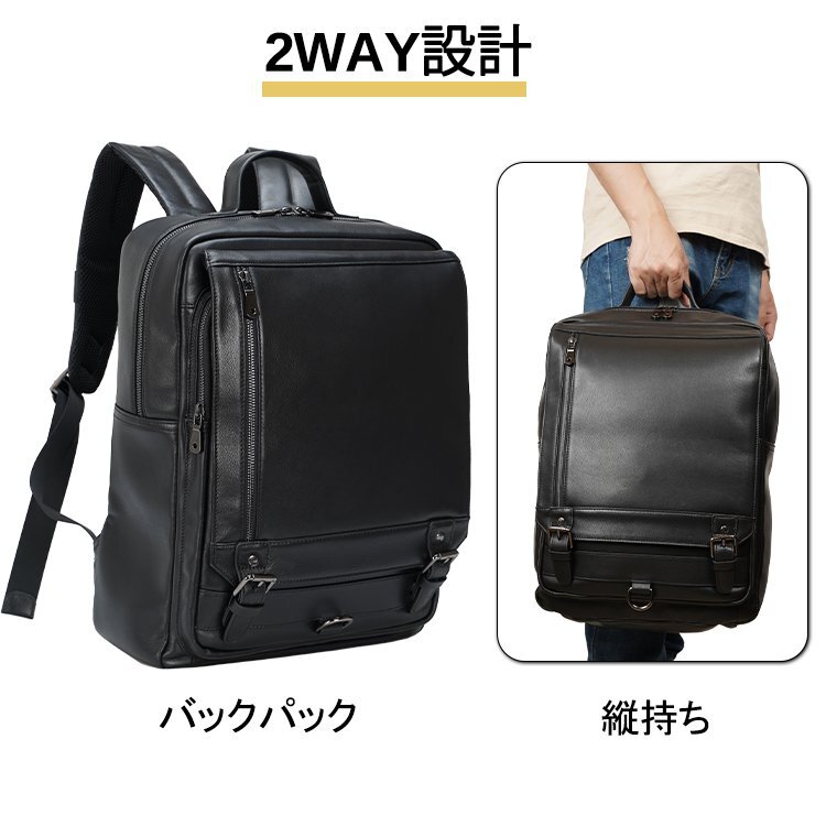 TIDING 贅沢仔牛革 本革 リュックサック ディパック 大容量 15.6PC対応 ON/OFF兼用 男女兼用 トラベルバッグ 黒