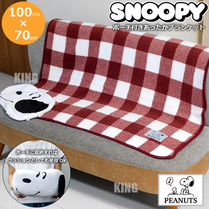 送料無料 新品 スヌーピー フェイス型ポーチ付き ブランケット ひざ掛け ひざかけ 膝掛け レディース キッズ SNOOPY PEANUTS 防寒具 A★
