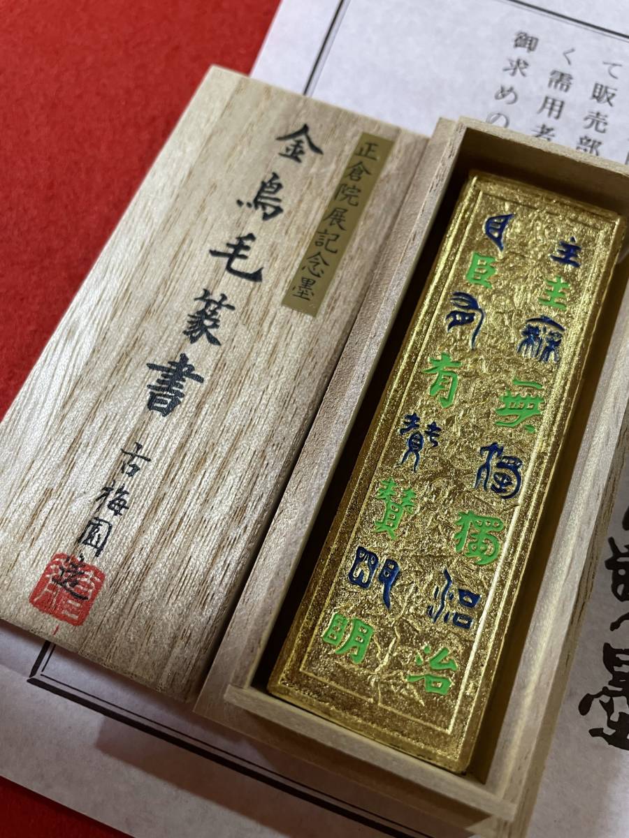 古梅園 書道墨『金鳥毛篆書墨』金箔蒔墨 正倉院宝物模写墨 高級油煙墨 稀少墨 未使用・新品保管品