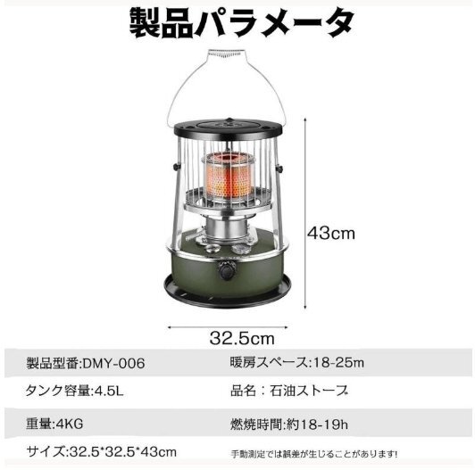 【大容量タンク】ストーブ4.5L大容量タンクを採用、約15時間から20時間の連続燃焼が可能、約広さ12畳使えます、一目でわかりやすいメーターで回転式の調節ハンドルで簡単操作。