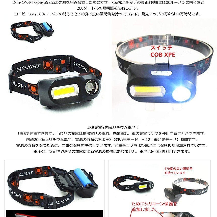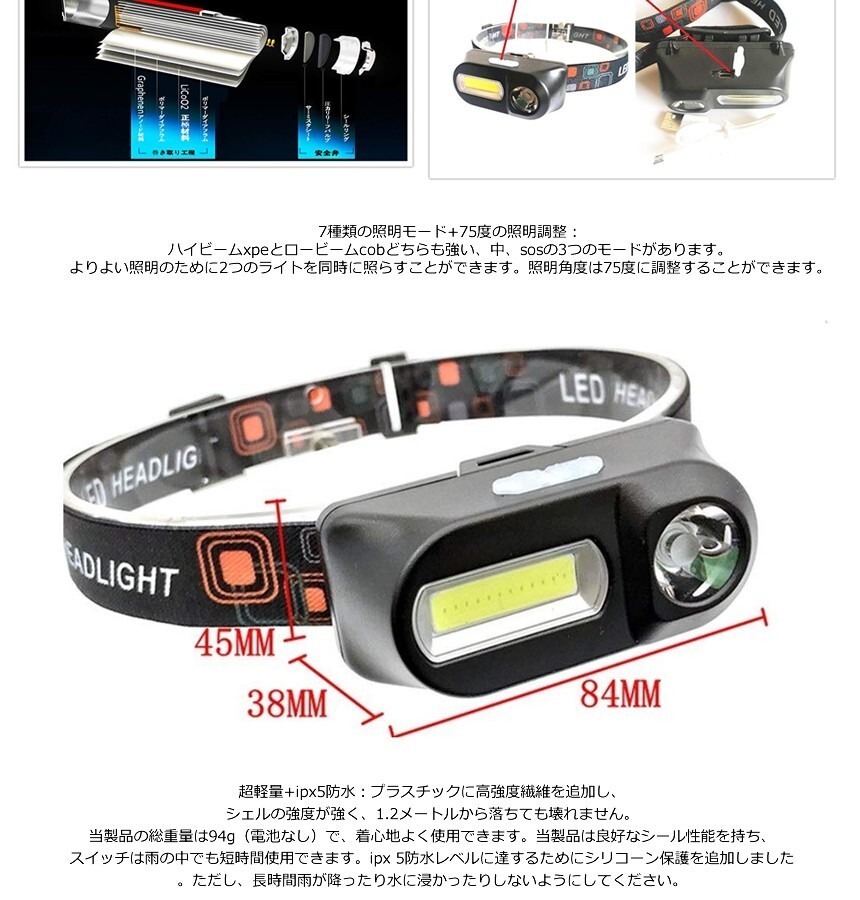 | 送料無料!!! 送料及び下記のご案内をご確認の上、ご入札お願い致します。 離島地域を除く九州、四国、本州まで送料無料。 ※北海道は+1000円、離島地域及び沖縄県は+3000円にて承ります。(発送前に加算) ※画像内にカラー及びサイズ等の選択が可能と記載がある場合がございますが、 お届けする物はタイトルまたは商品説明文に記載の物です。 ★※注文後のカラー変更や異なるカラー・サイズ指定等は一切承っておりません。 ※★※仕様(ロゴデザイン/ロゴ有無等も含む)は予告なく変更する場合があります。 ※多少の汚れや小傷がある場合がございますがご了承ください。 梱包は簡易包装ですので、箱の角落ち等はご了承願います。 ■商品説明■ 2-in-1ヘッドライト: ワイドビームとスポットビームの2つのライトを搭載したヘッドライト!! 独立したボタンが付いているので別々で操作することができる!! ワイドビームは照射角270度、180ルーメンの白色のCOBライトを採用、 スポットビームは照射距離最大約200m、100ルーメンの白色のXPEライトを採用し、 用途に合わせて使い分けることができます。 発光チップの寿命はなんと約10万時間!! USBで充電! 内蔵2000maリチウム電池、 点灯時間はおよそ3(強い光モード)~9(弱い光モード)時間。 7種類の点灯モード+75度の照射角度調整: ワイドビームとスポットビームどちらとも強い、中、sosの3つのモードがあります。 2つのライトを同時に照らすことも可能!! 照明角度は75度に調整することができます。 夜釣りやキャンプにも最適です。 ====================== ※詳細は画像をご覧ください。 ![]() ![]() ![]() ![]() |