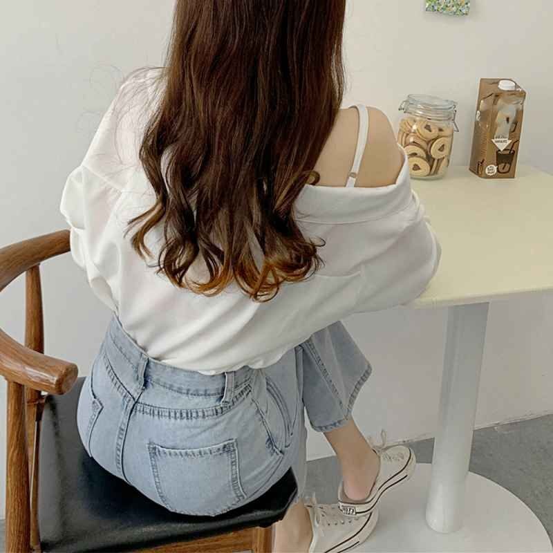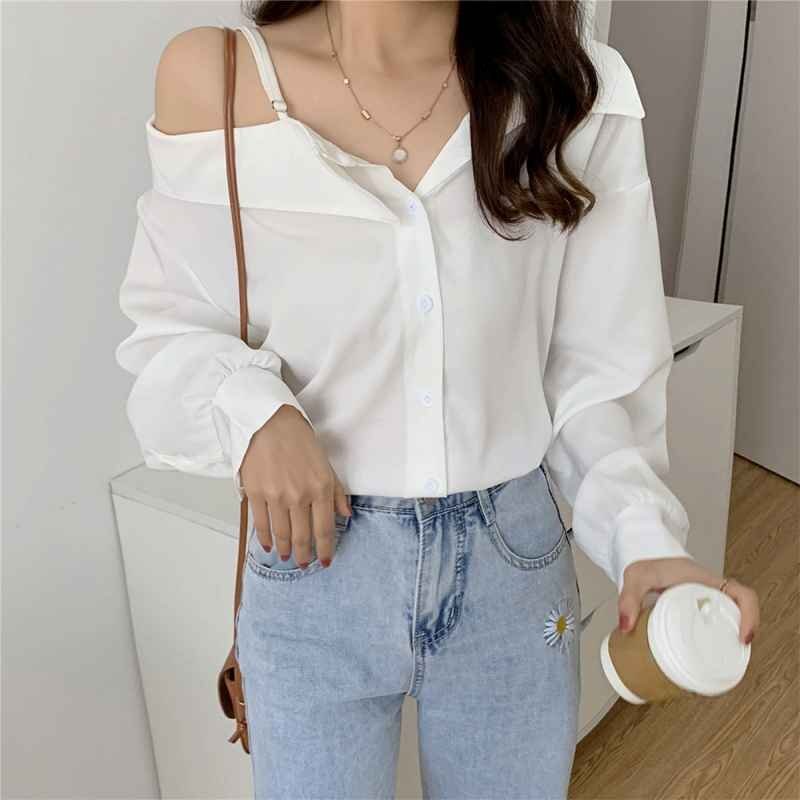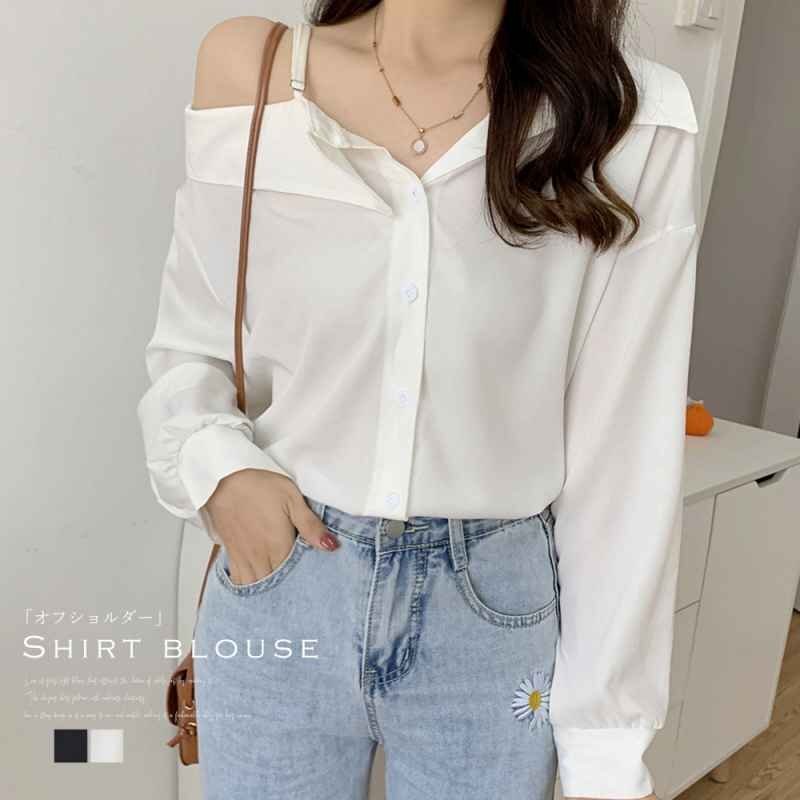 程よくハリのある上品なシャツ生地は、ストラップデザインだから着回しやすくロングシーズンお洒落の味方に。