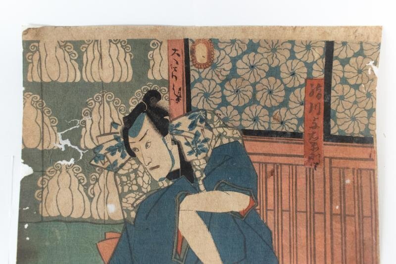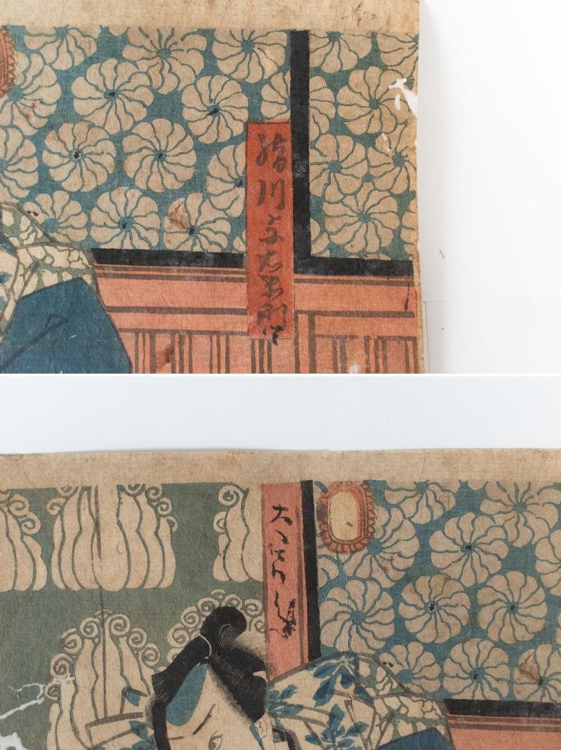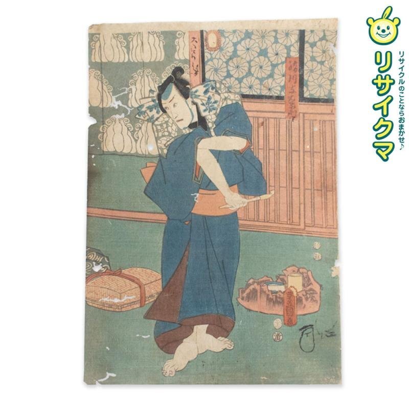 【中古】M▽三代目 歌川豊国 歌川国貞 絹川与右衛門 市川團十郎 1853年 木版画 役者画 歌舞伎絵 浮世絵 錦絵 大判 不揃い (K00751)