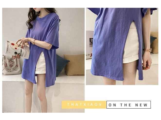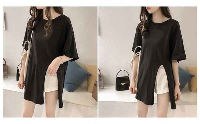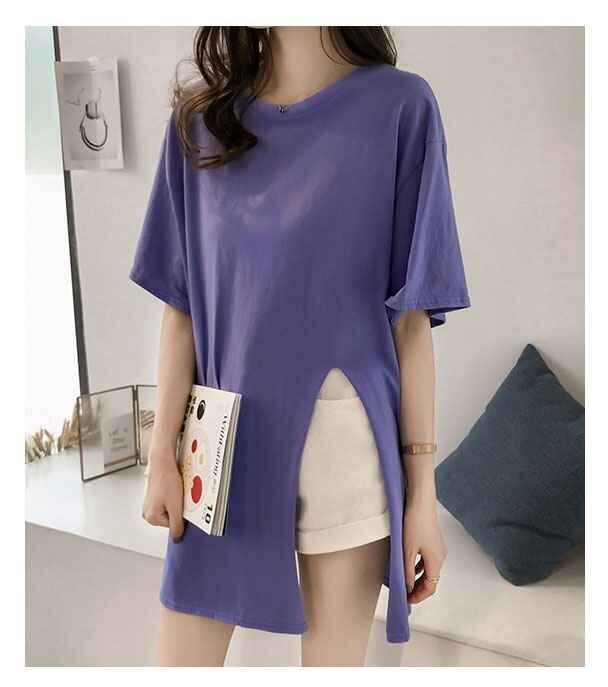 大きめシルエットなので一枚でさらっと着こなしも可能ですが、深めなスリットなのでスキニーデニムやワイドパンツレギパン、ショートパンツなどと合わせて着るのがおすすめ。