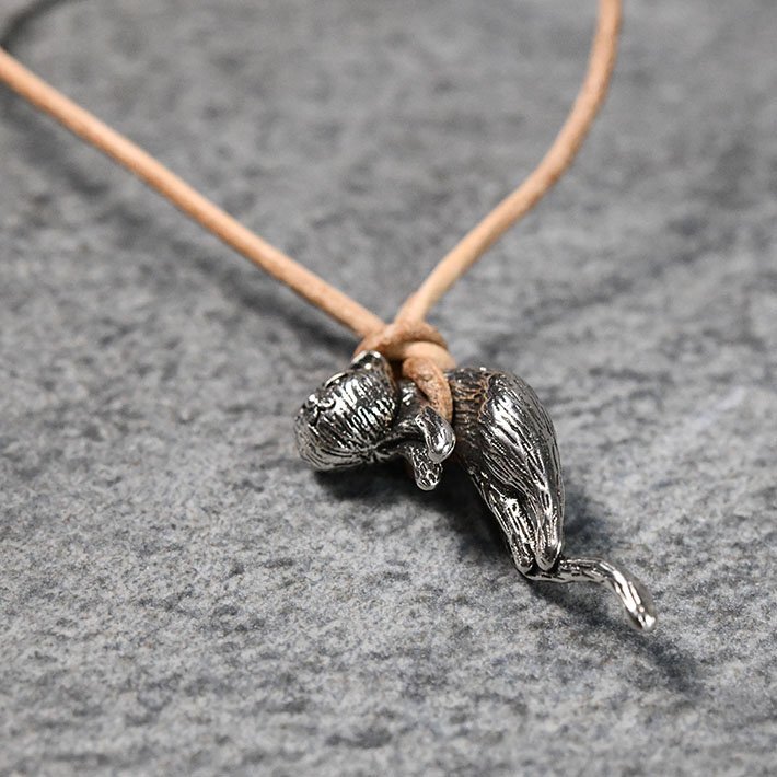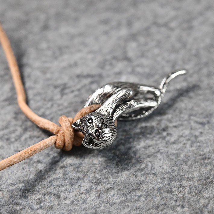 ネックレス メンズ レディース ネコ 猫 チョーカー ペンダント アクセサリー レザーコード 調節 7987317 ONESIZE シルバー 新品