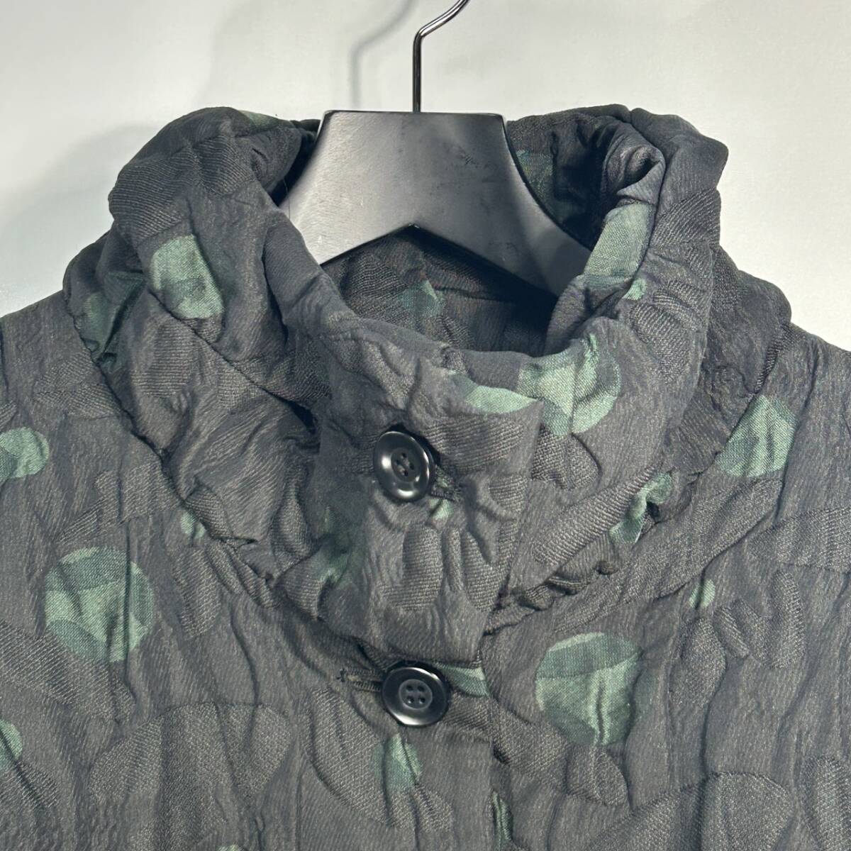 人気ブランド「慈雨(じう)」のアウターです。お色はシックなブラックを基調に、ドット柄ような模様が全体に施されており、落ち着きの中にも個性が光るデザインです。