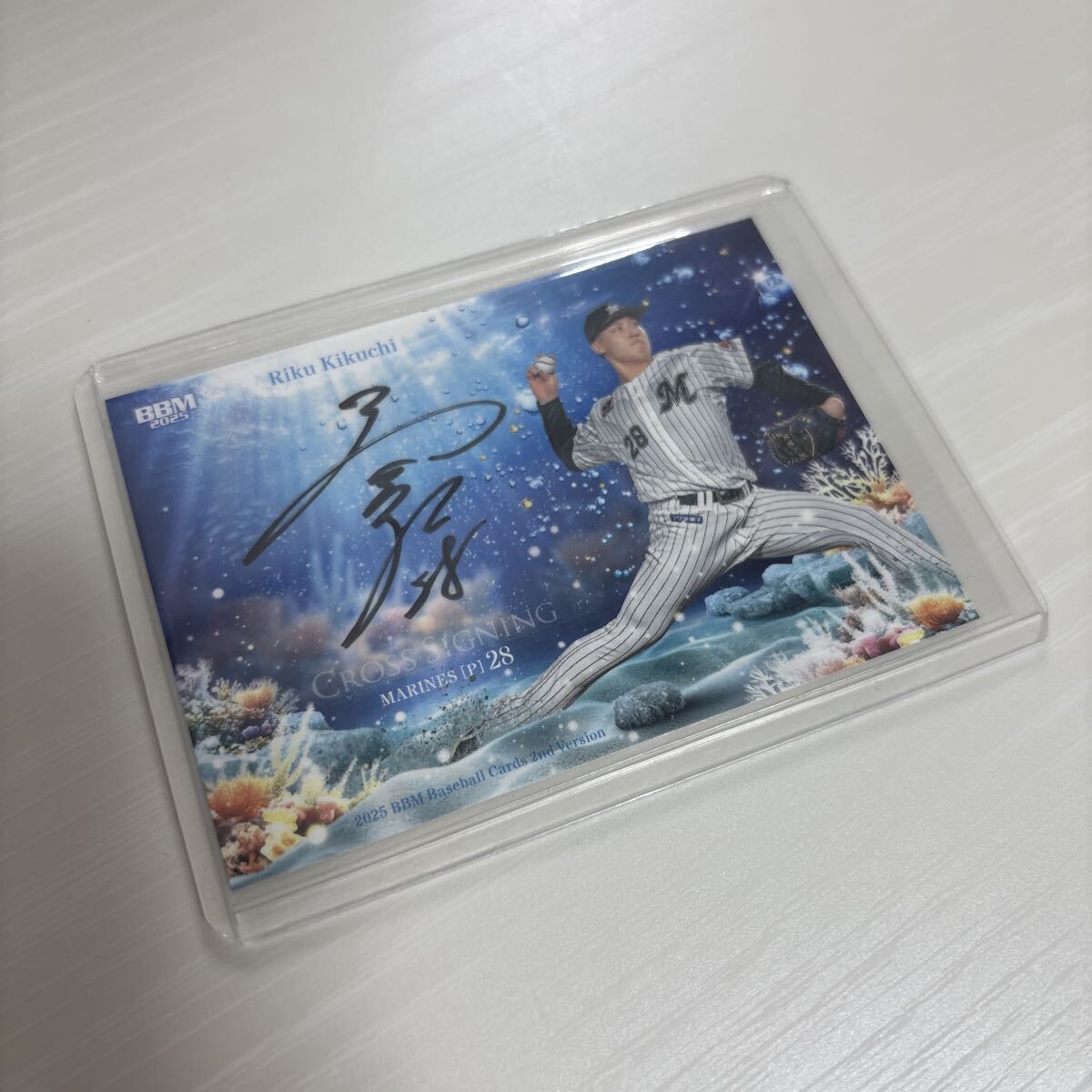 DA46 23/30 菊地吏玖 千葉ロッテマリーンズ BBM クロス直筆サインカード 2nd クロスサイン