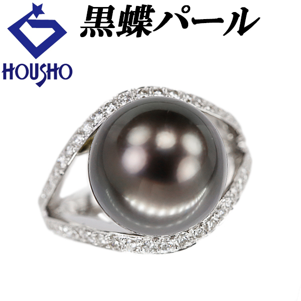 【セール開催中】黒蝶真珠(南洋真珠) リング ダイヤモンド K18ホワイトゴールド 透かし 送料無料 中古 宝正 900416