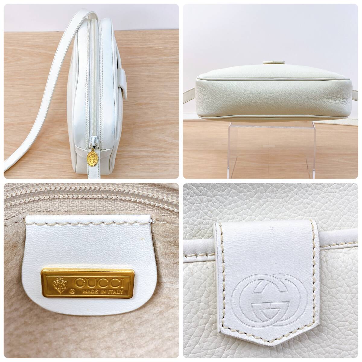 GUCCI グッチ ショルダーバッグ カバン GG ロゴ ショルダーポーチ 鞄 ヴィンテージ オールドグッチ ホワイト 白