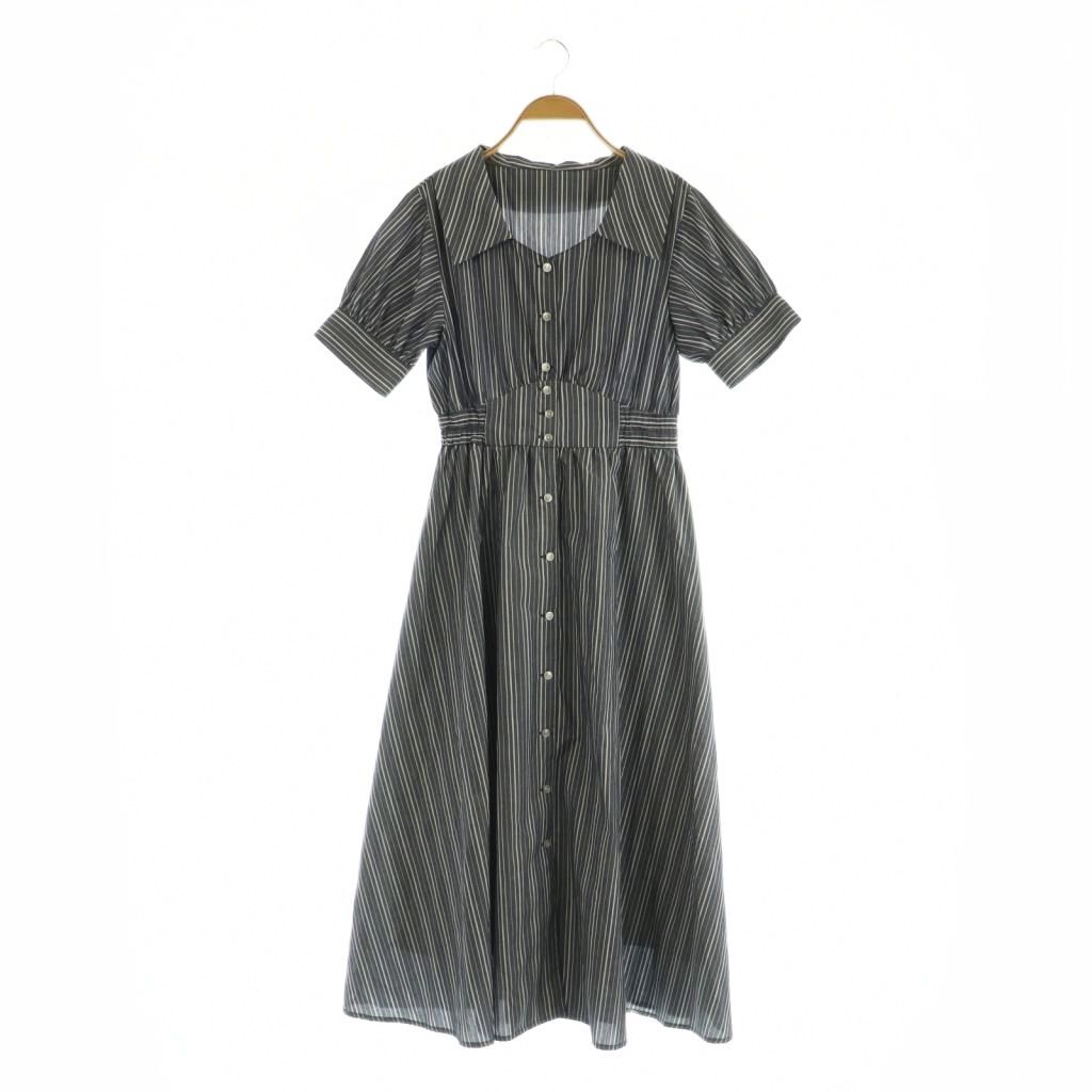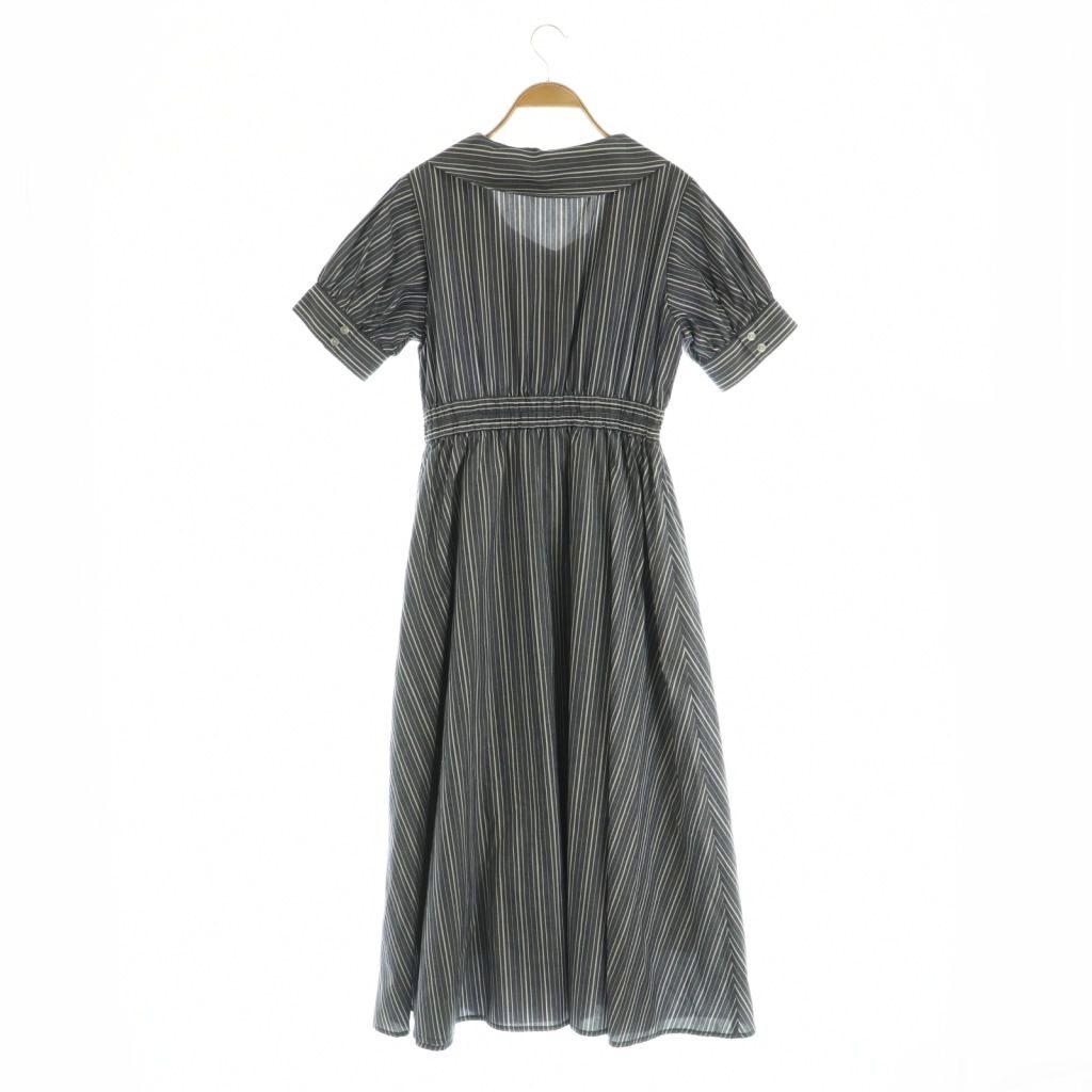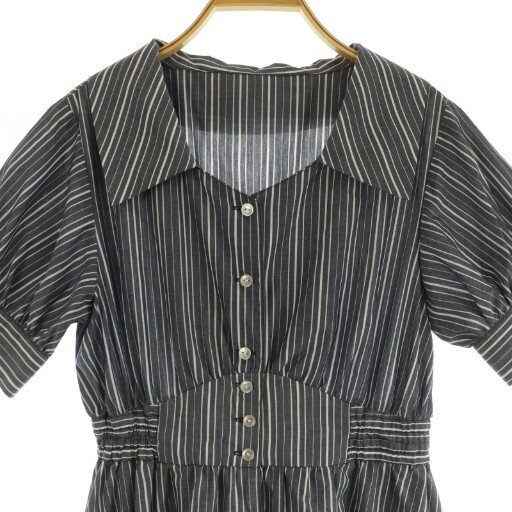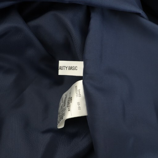 ナチュラルビューティーベーシック NATURAL BEAUTY BASIC 23AW ビッグカラーシャツワンピース ロング 五分袖 ストライプ M ネイビー