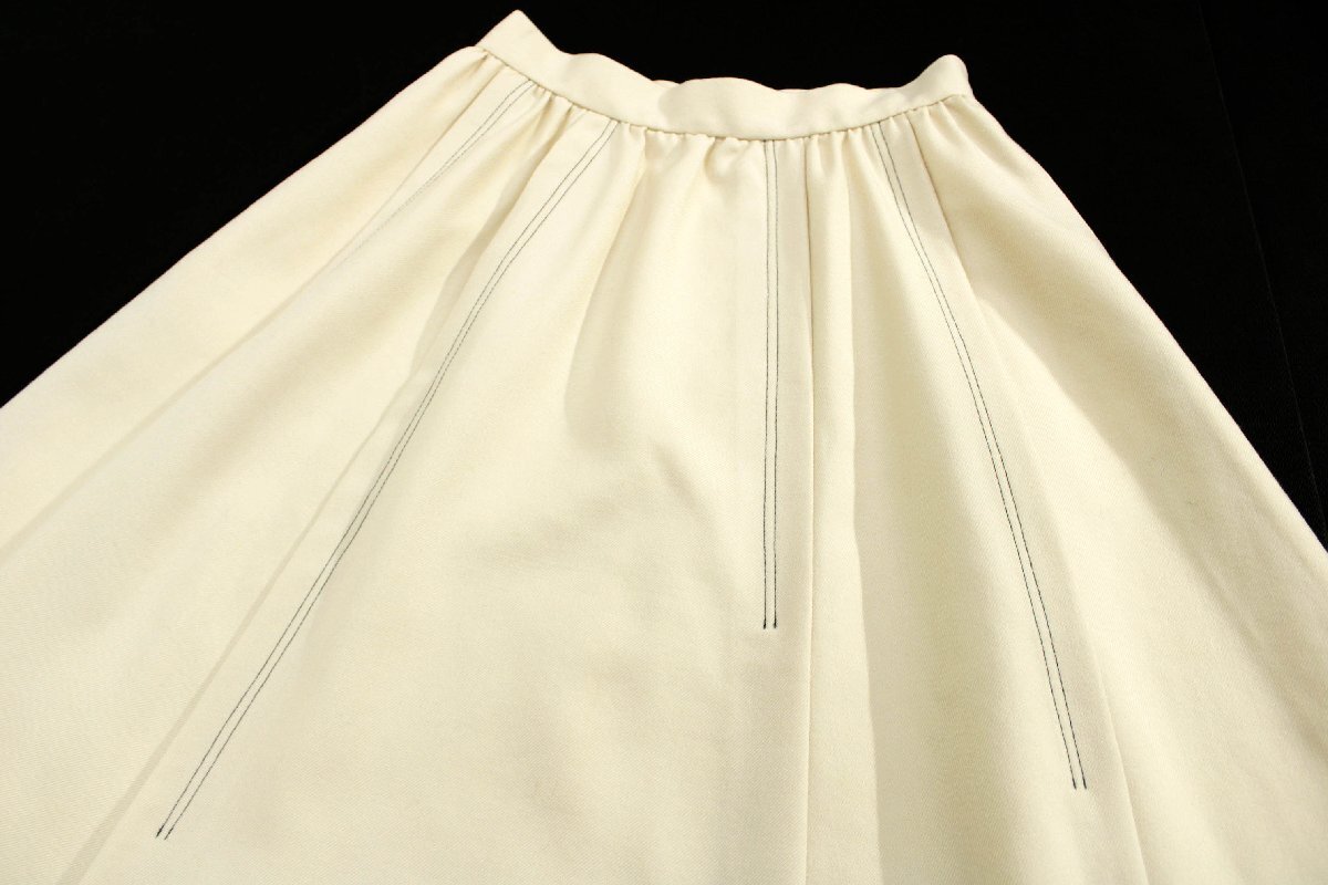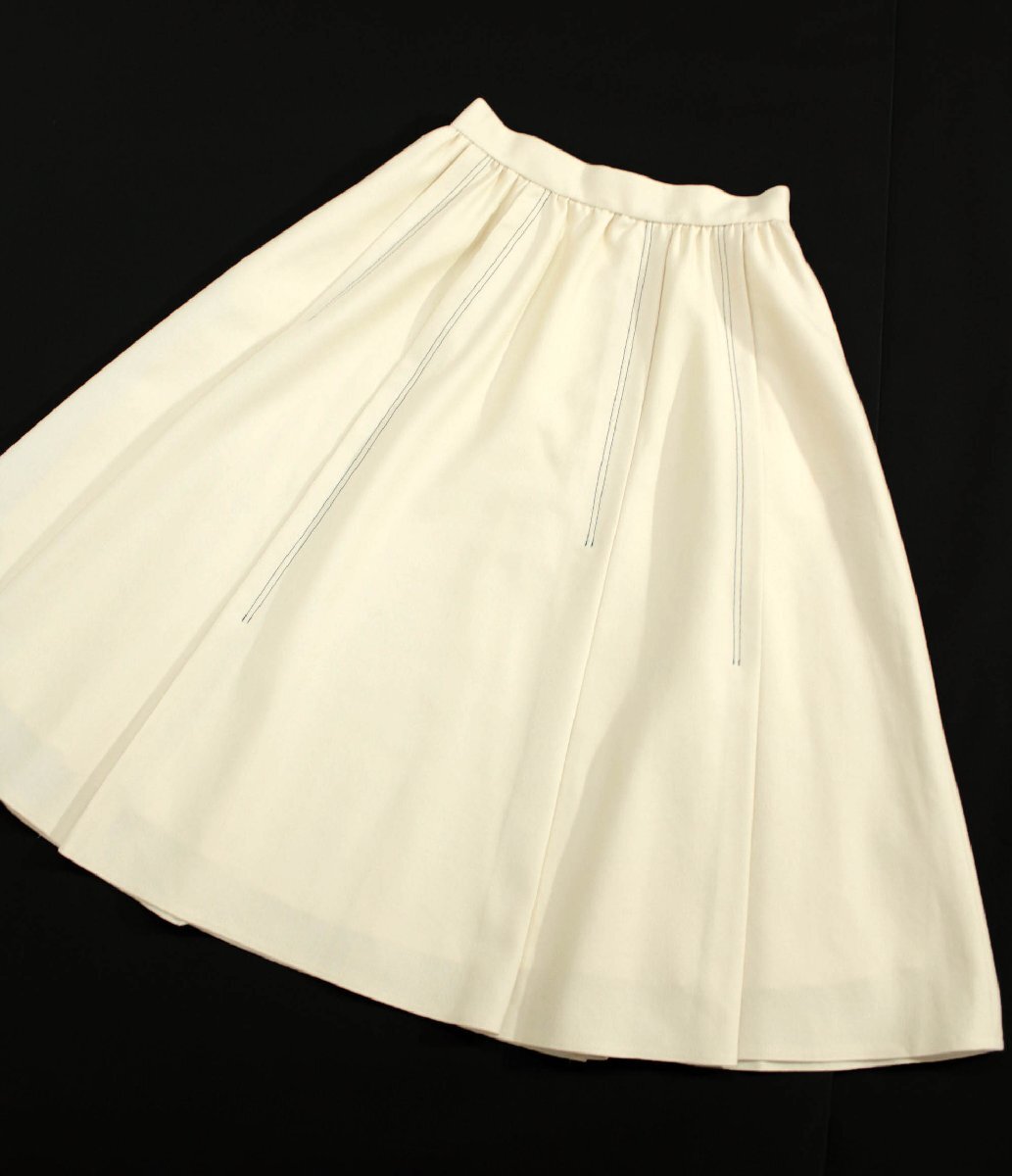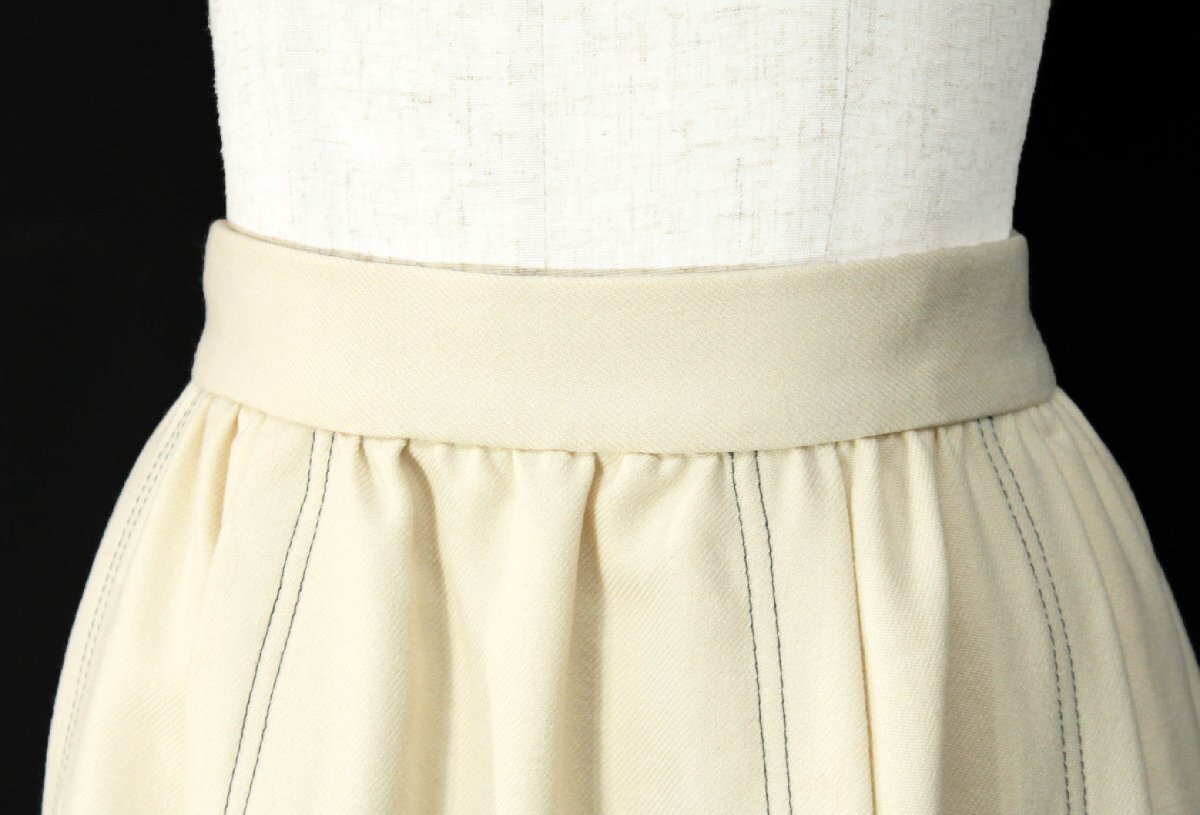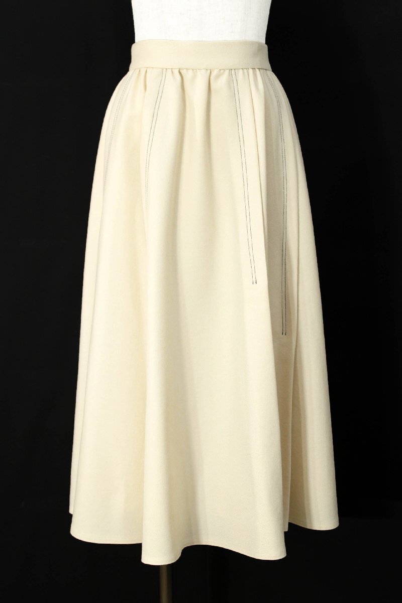☆美品☆Reneルネ/ウール100%ステッチ使いロングフレアスカート定価3.8万:38/アイボリー系yy007