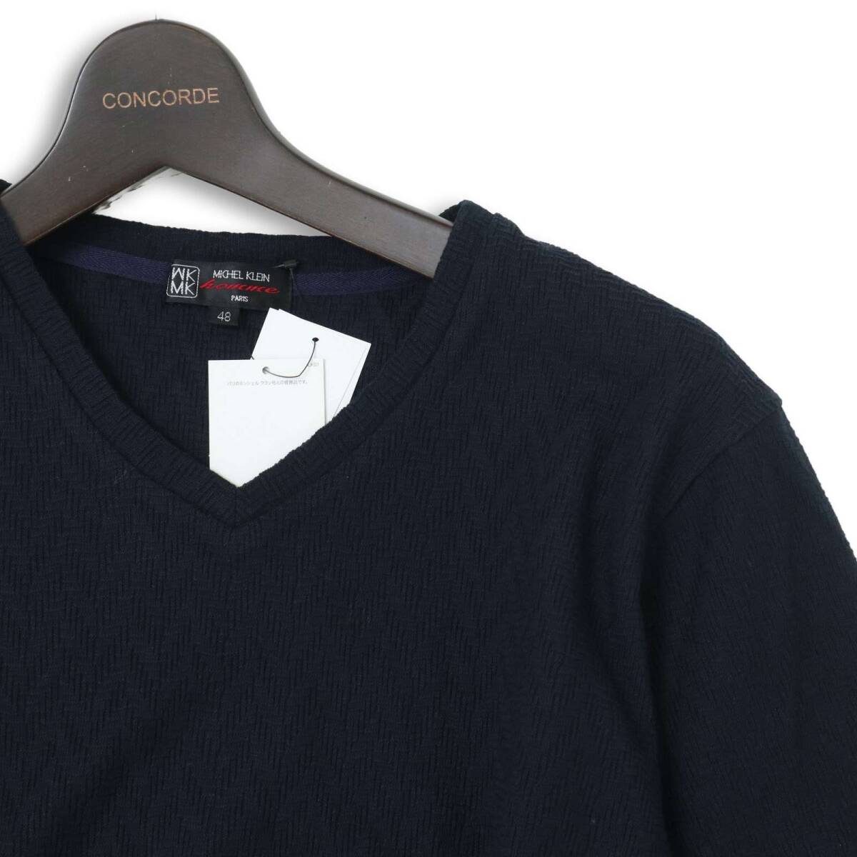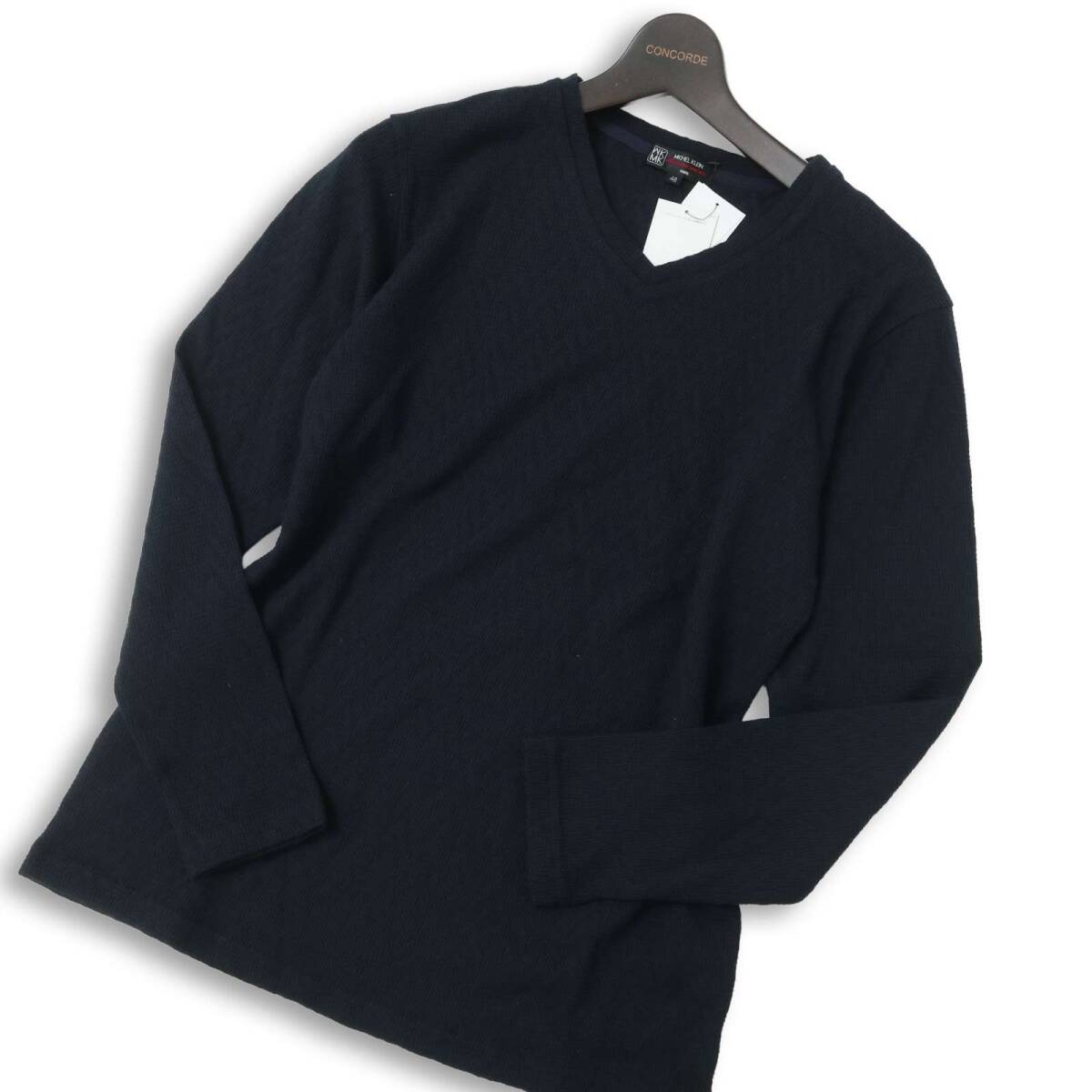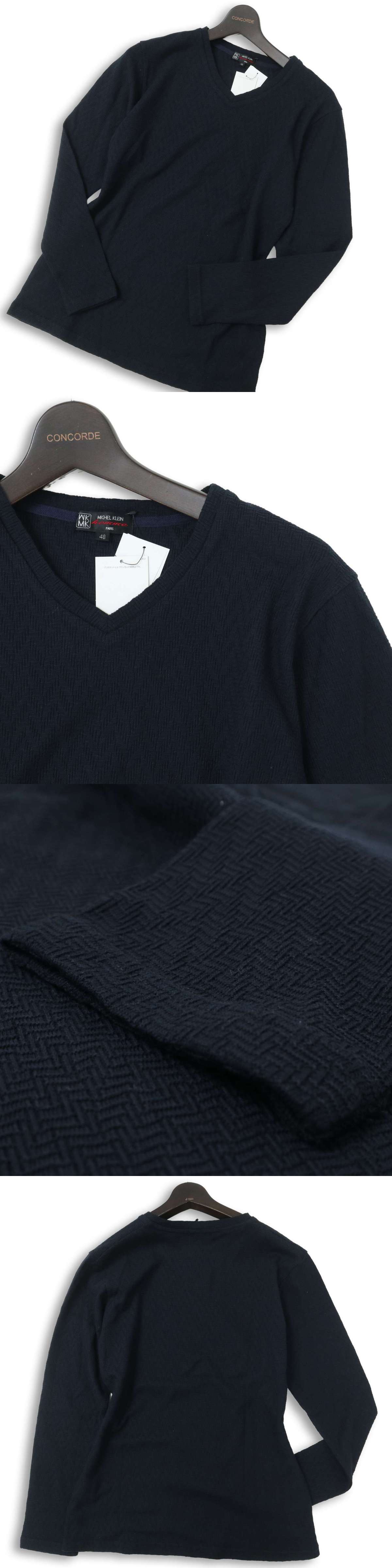 新品★ 未使用 MK HOMME ミッシェルクラン オム ヘリンボーン 長袖 Vネック カットソー ロンTシャツ Sz.48 メンズ ネイビー