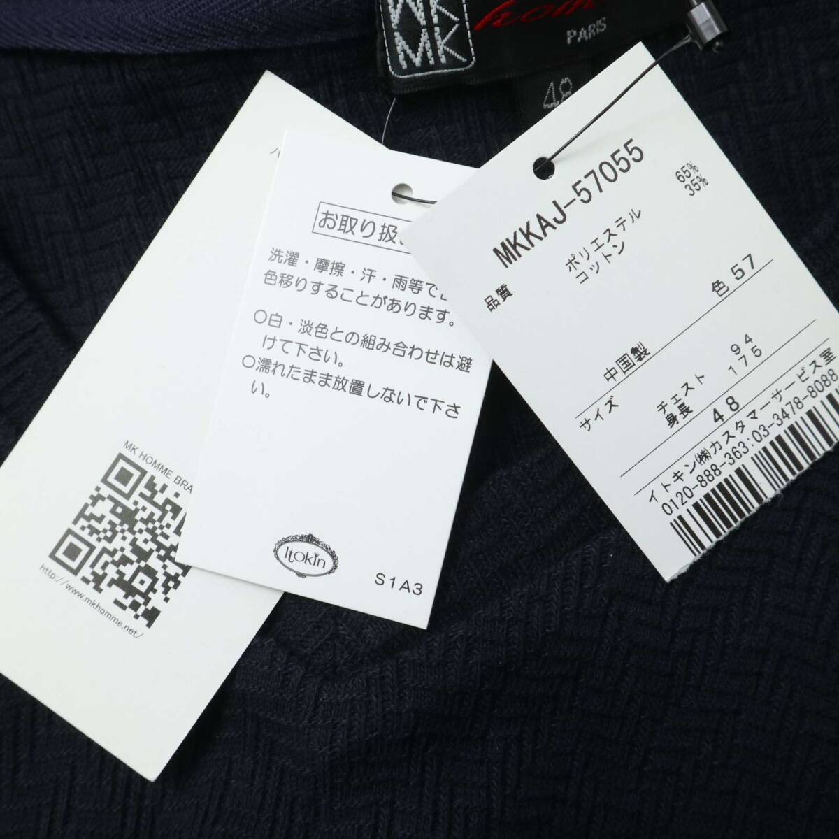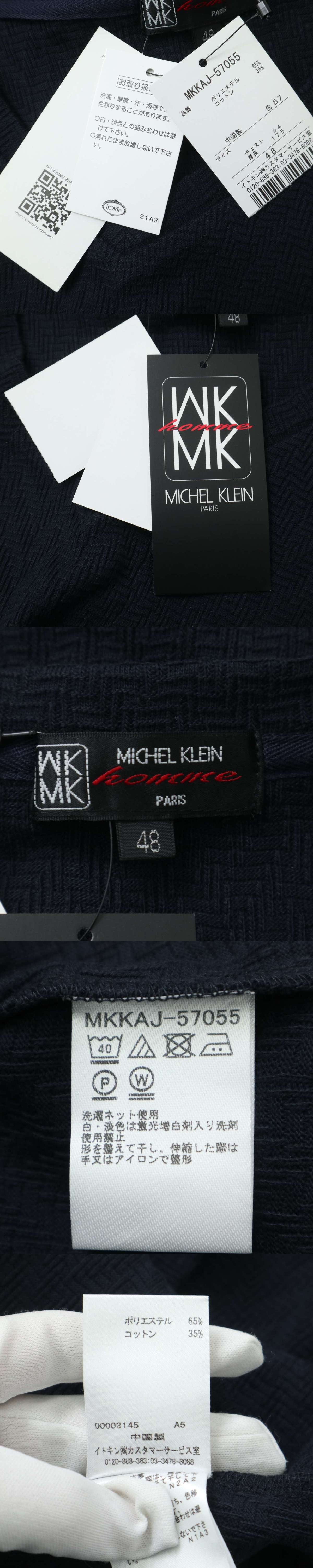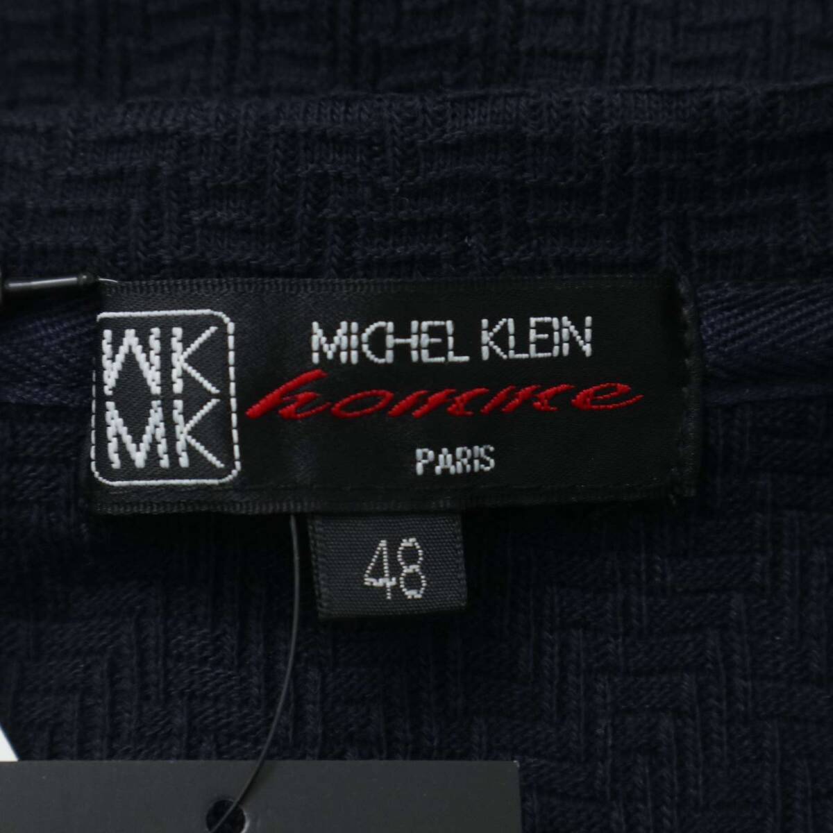 新品★ 未使用 MK HOMME ミッシェルクラン オム ヘリンボーン 長袖 Vネック カットソー ロンTシャツ Sz.48 メンズ ネイビー