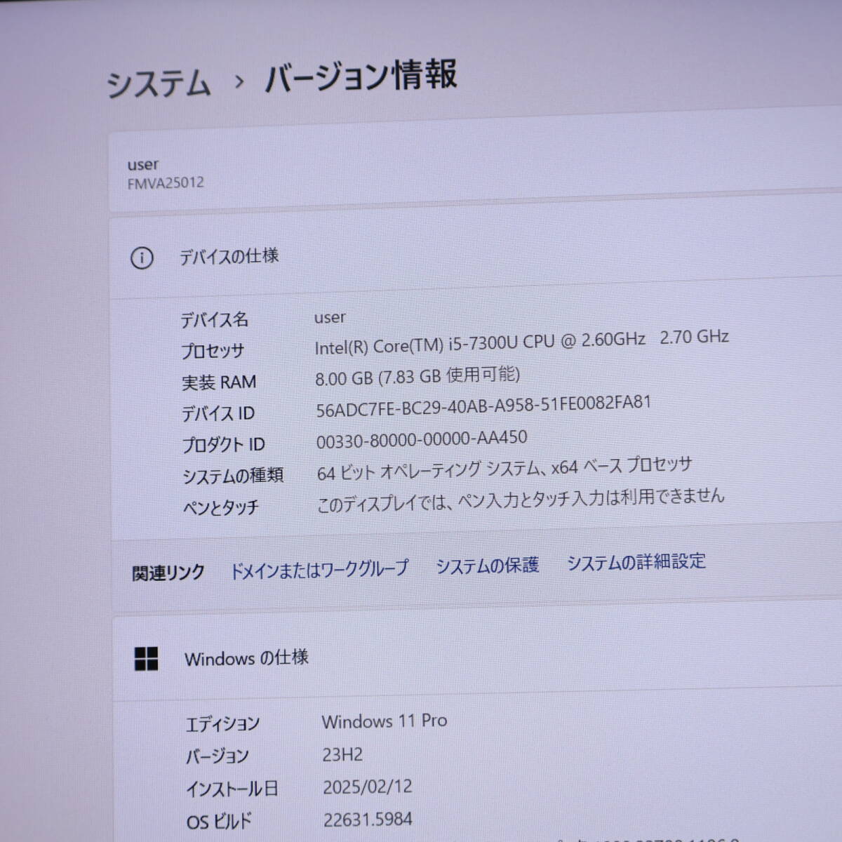 ★超美品 高性能7世代i5!SSD256GB メモリ8GB★A747/S Core i5-7300U Win11 MS Office2019 Home&Business 中古品 ノートパソコン★P93848