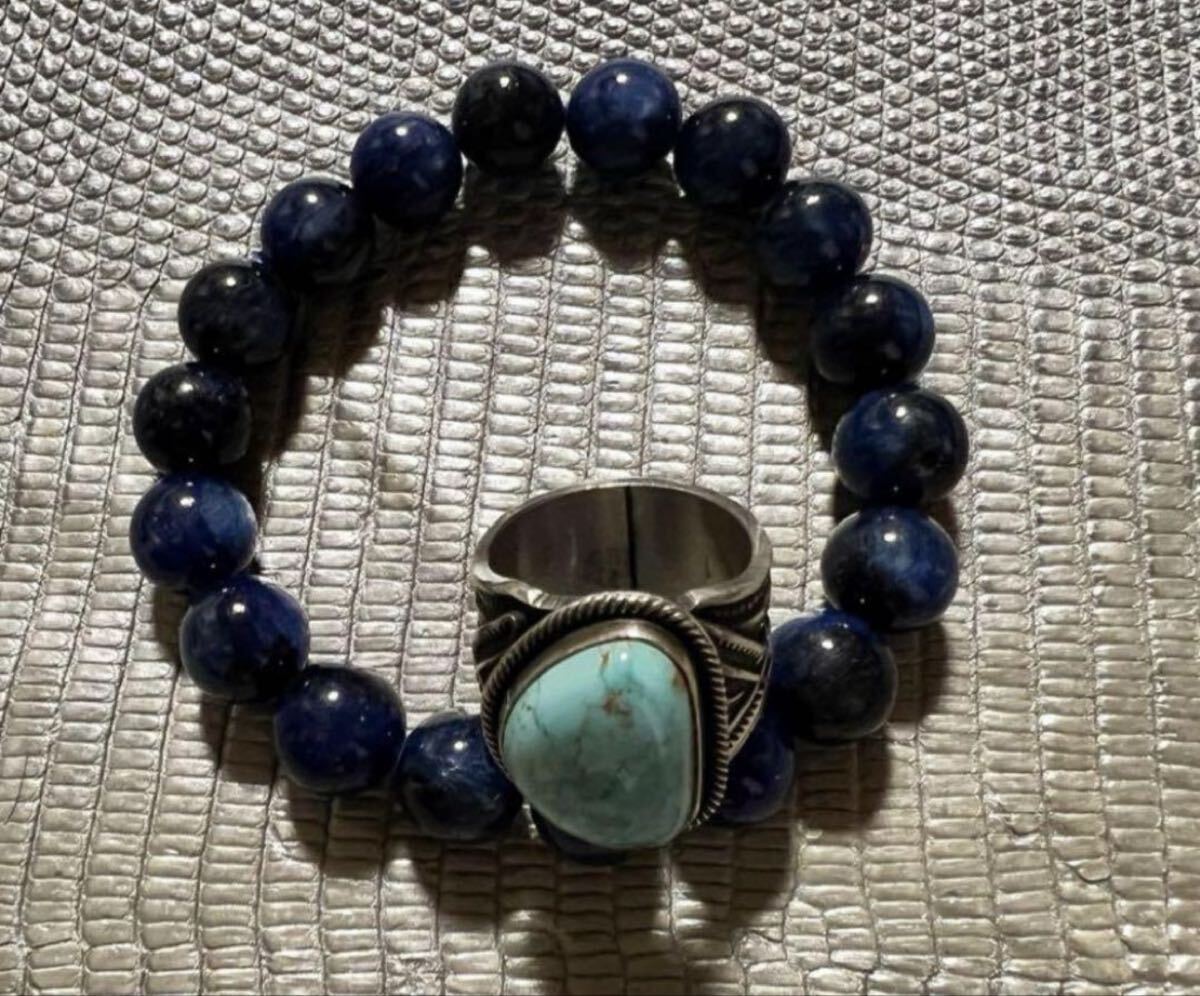 とてもターコイズはインパクトがあり大きいので指に嵌めても目立ちます。