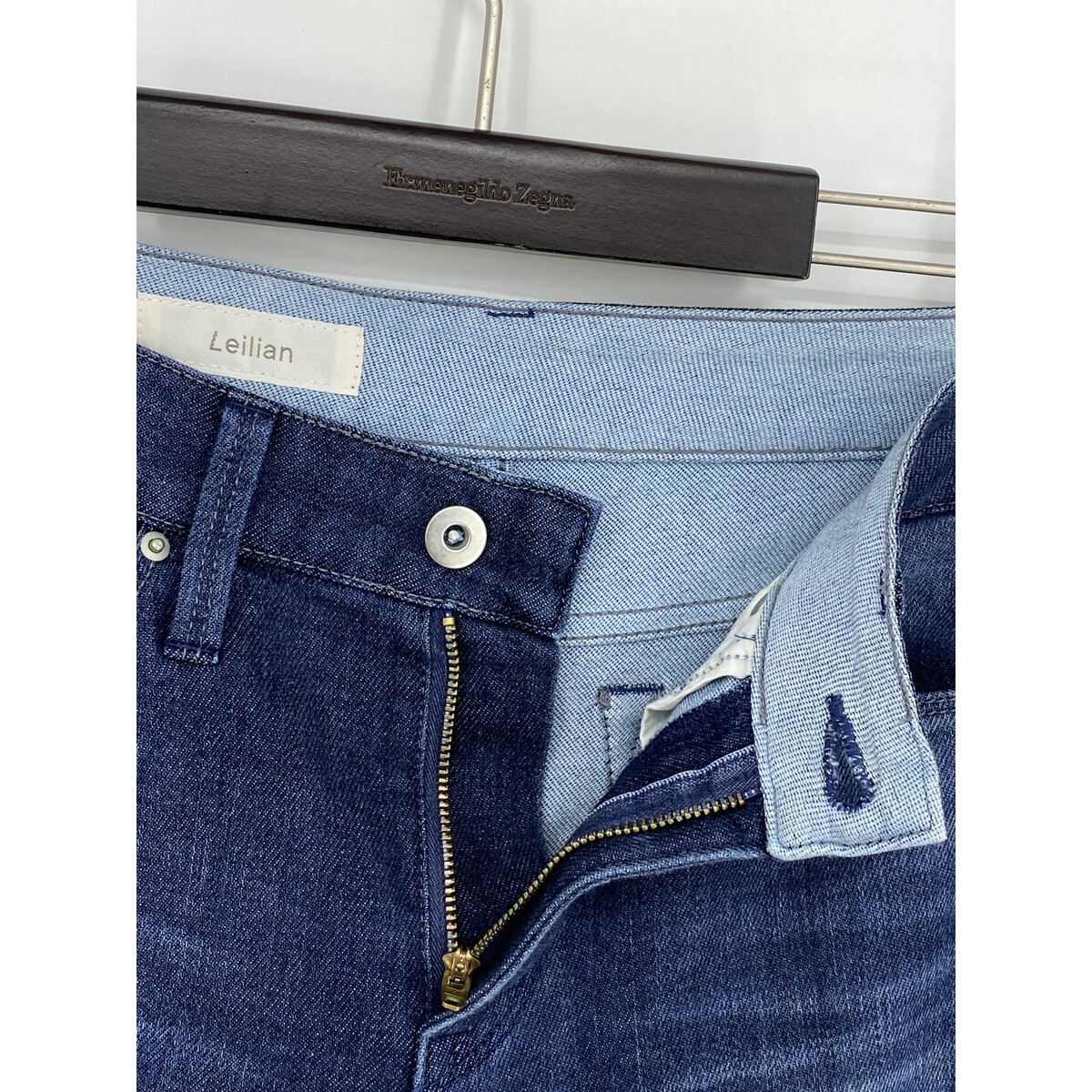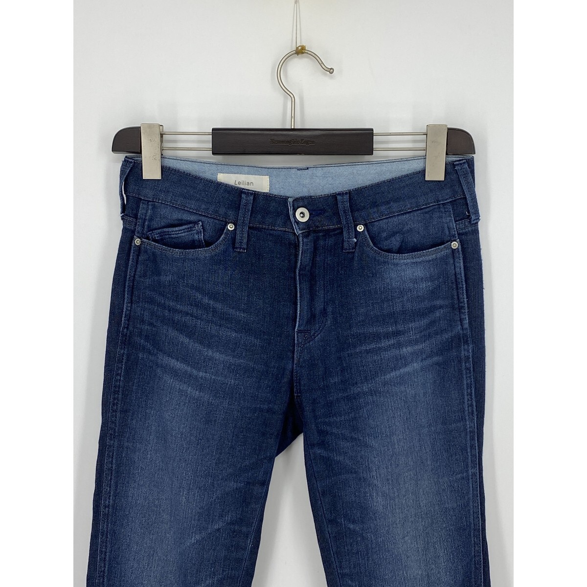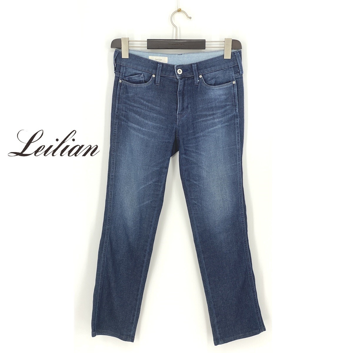 B0653/美品 Leilian レリアン コットン スレ加工 テーパード スリム ワーク ジーンズ デニムパンツ 9 M程 青 インディゴ レディース