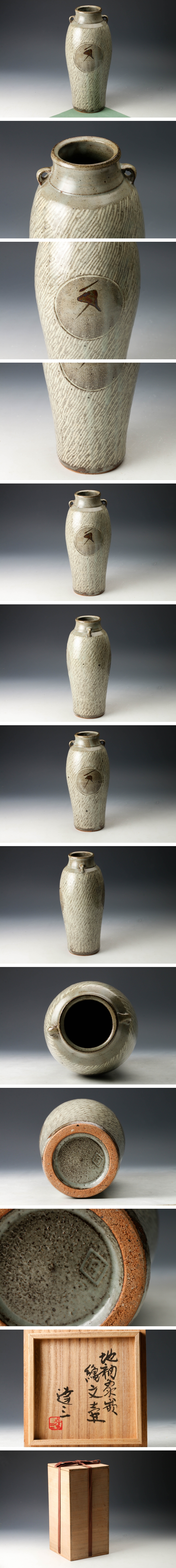 【佳香】人間国宝 島岡達三 地釉象嵌縄文壷 共箱 本物保証