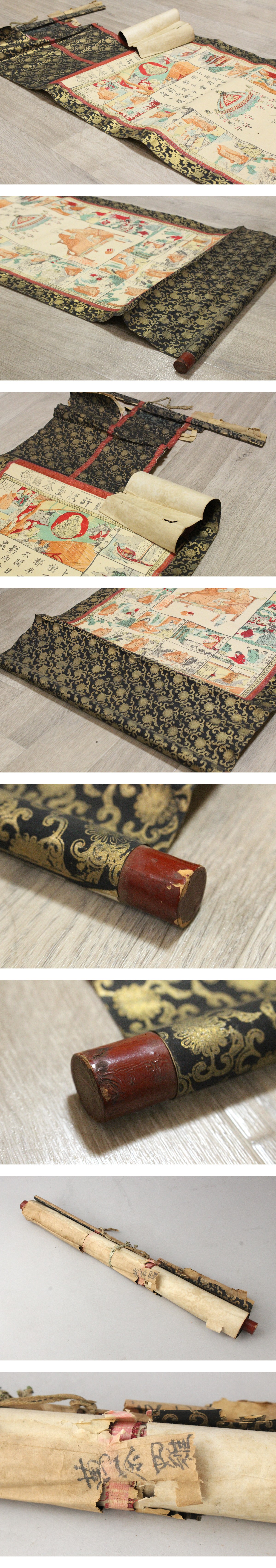 [014980]【版画】弘法大師行状曼荼羅 彩色紙本版摺 高野山西室院印 掛軸◆真言宗/空海/仏教美術/仏画/古画/護符/古美術/骨董/うぶ品