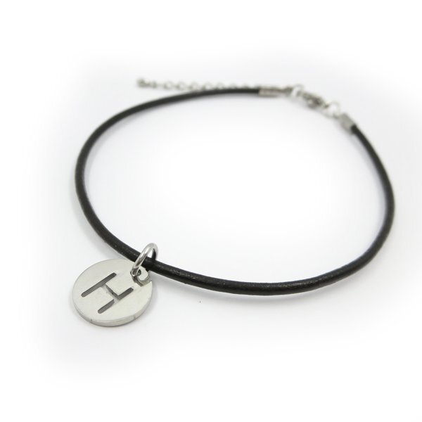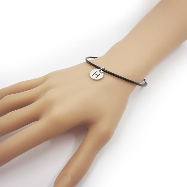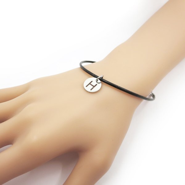 H イニシャルレザーブレスレット ステンレスチャーム ラウンド 全長約20cm(17+3cmアジャスター)