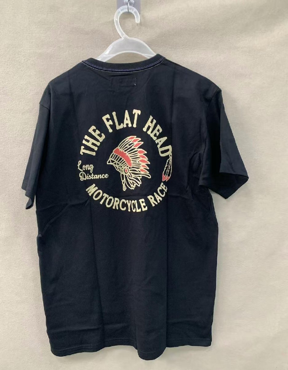 THE FLAT HEAD フラッドヘッド 3本針の1本外し 半袖tシャツ ブラック FN-THC-048 肉厚 メンズ コットン 丸編機半袖 ネックTシャツ 40サイズ