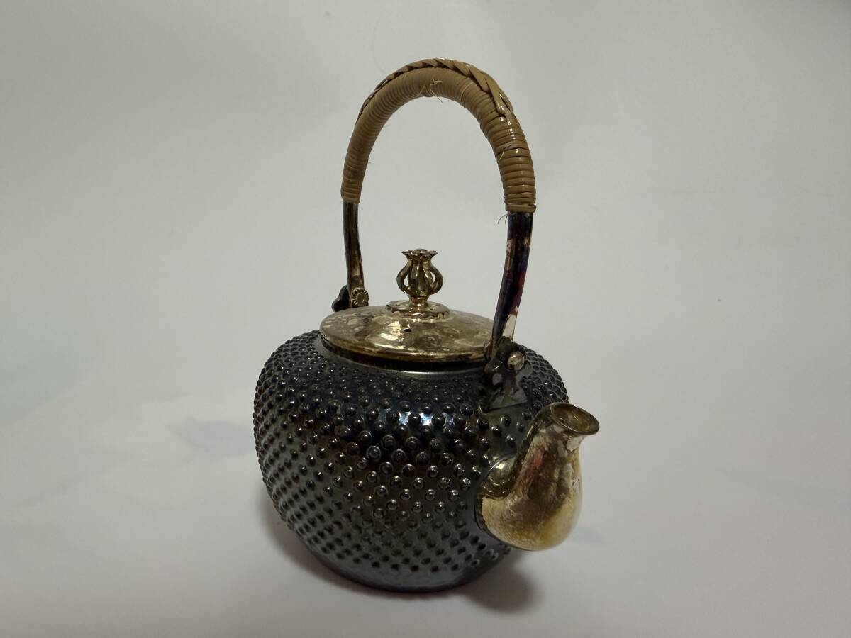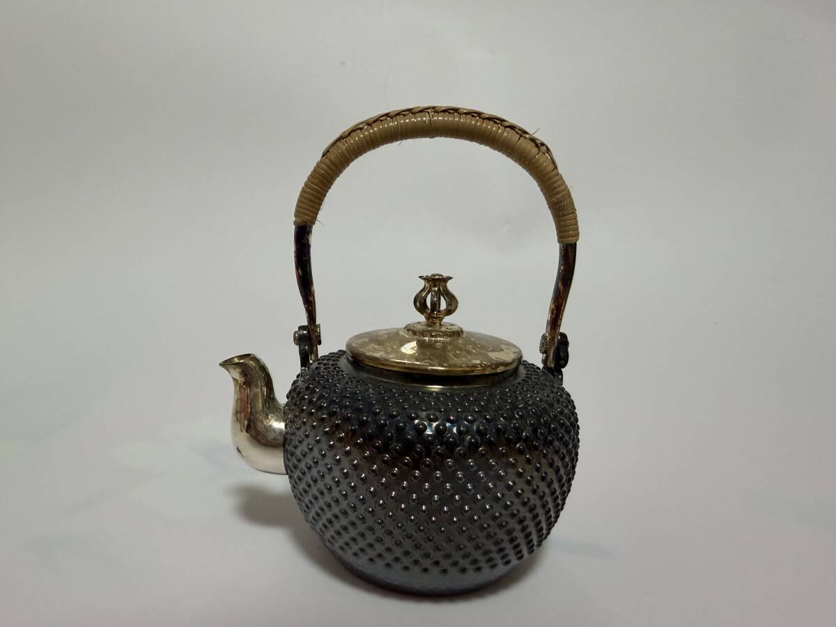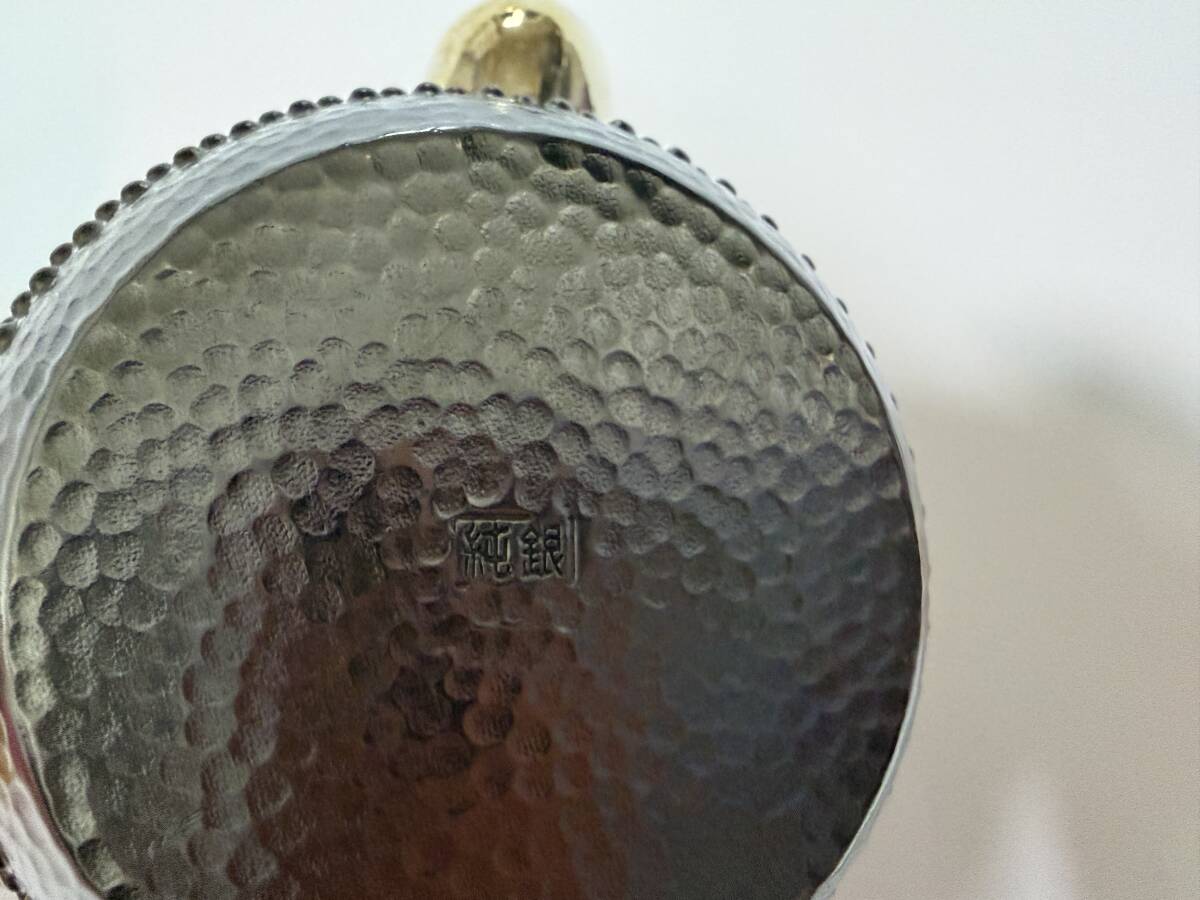 時代 純銀製 光南造 玉霰打出 蕾摘 急須 工芸品 美術品 銀瓶 煎茶道具